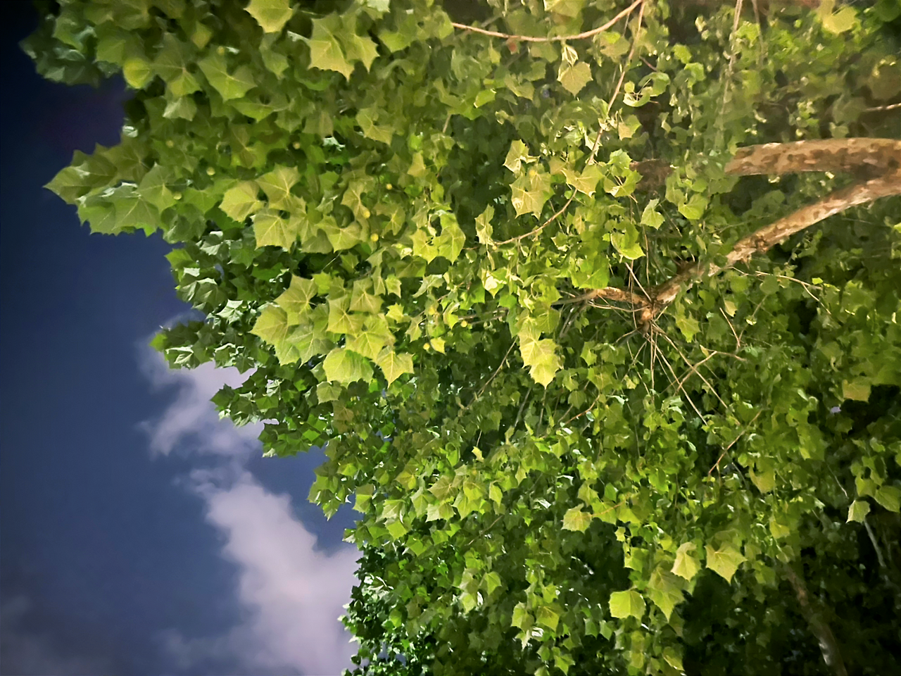 어둠이 깔린 순간도 초록은 빛이 난다.