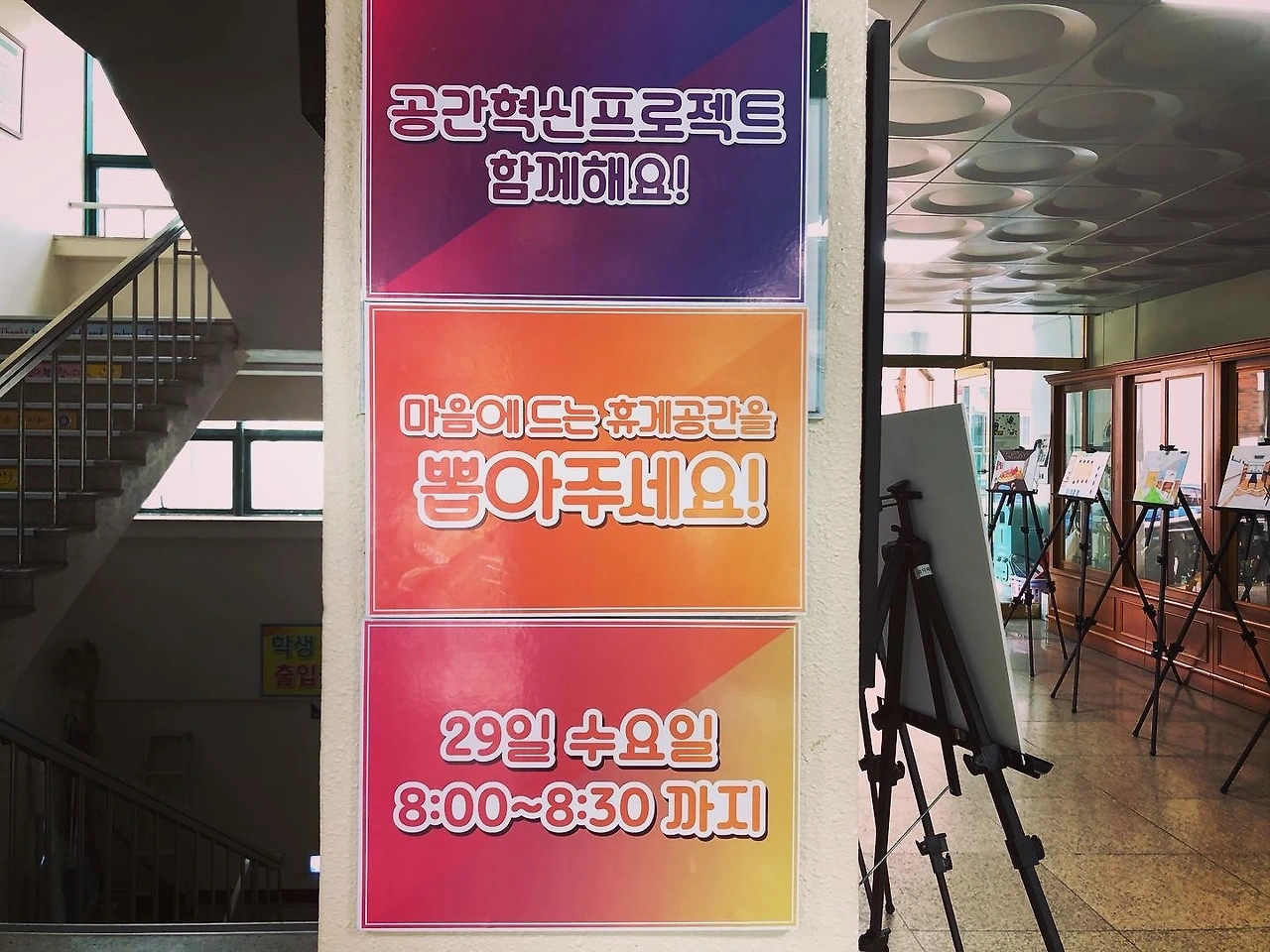 전시회는 3일 동안 중앙현관 입구 공간을 이용해 진행되었다. 선생님들의 격려와 친구들의 기대감이 큰 응원이 되어주었다.