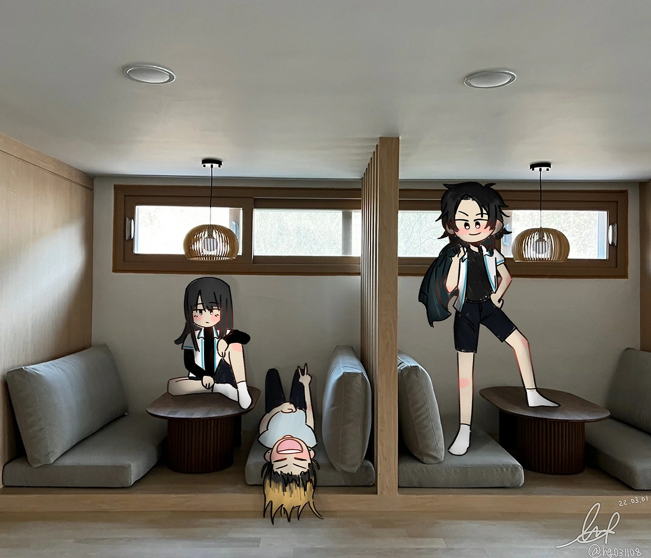 그림으로나마 휴게실을 점령하고 싶은 마음 , 휴게실을 지키는 3인방의 드로잉에 마음이 흐뭇하다.