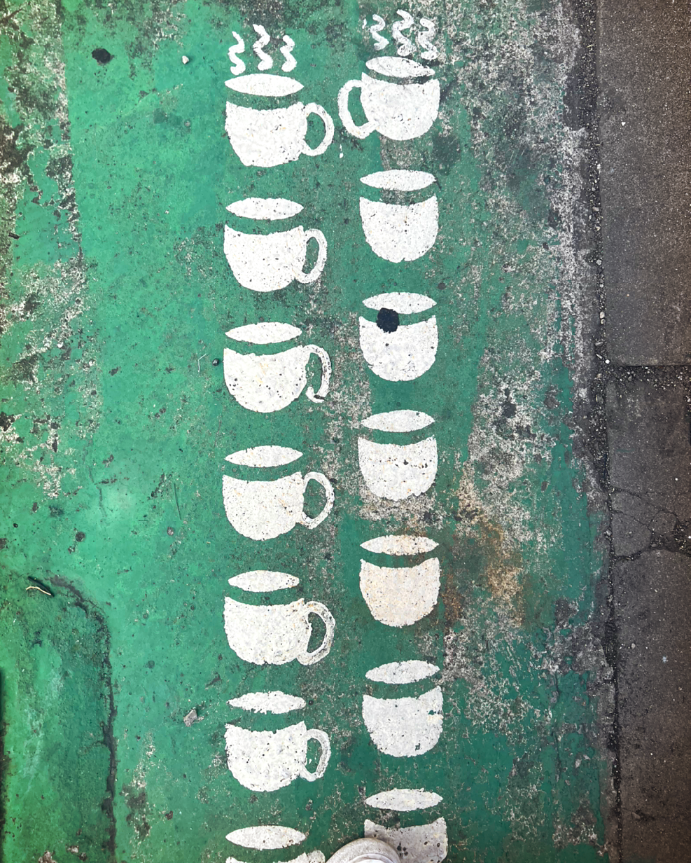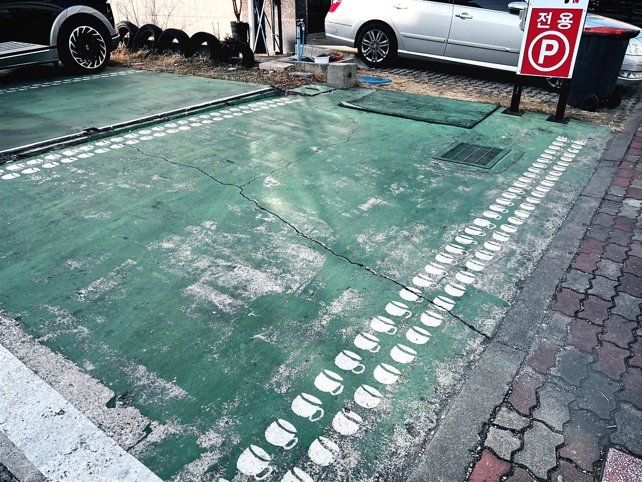 커피 잔형태로 그려진 주차선이라니.. 커피집 전용 주차장이구나 라는 것을 쉽게 알게 된다.