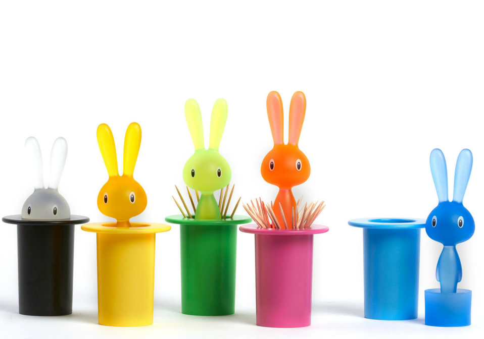 세 번째 작품은 알레시와의 협업으로 제작한 주방용품들이다. 그는 이쑤시개통으로 디자이너로서의 명성을 얻기 시작했으며 그만의 익살스러운 디자인의 모습을 볼 수 있다. 작고 길쭉한 원기둥 모양의 통에 토끼 캐릭터가 있는 디자인인데 길게 솟은 귀를 잡고 올리면 이쑤시개가 잡기 편한 방향으로 나오게 되어 있다. 별 것 아닌 사소한 물건이지만 그의 디자인은 사람의 마음을 움직이는 힘을 가지고 있는 듯하다. 동심 한 스푼, 귀여움 한 스푼, 위트 한 스푼을 얹은 듯한 그의 레빗 체어는 플라스틱 소재 외에도 금속 마감 처리된 것과 벨뱃 소재까지 고루 갖추고 있어 분위기에 맞게 선택이 가능하다. 의자이면서도 동시에 포인트 오브제로서의 기능으로서도 완벽하다.