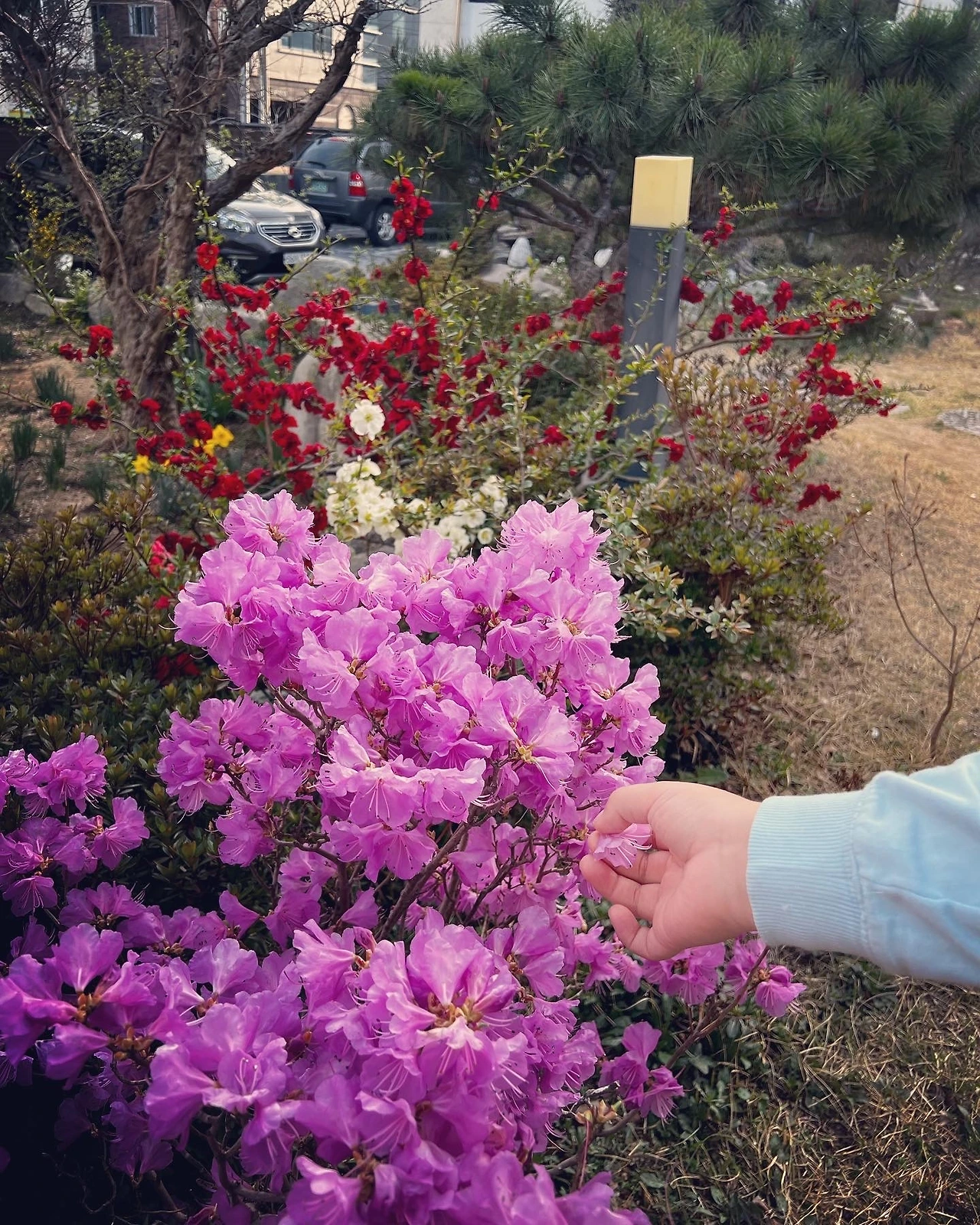 꽃망울들이 다 피면 아이들과 노릇노릇 진달래 화전을 구워볼 테다. 아이들에겐 추억의 맛, 나에겐 꿀맛이겠지.