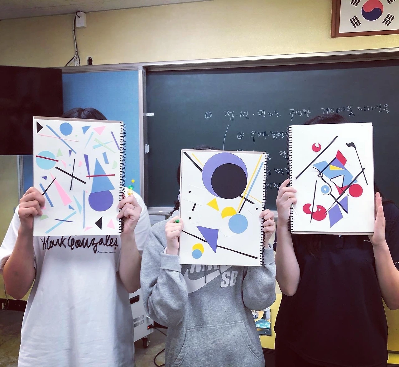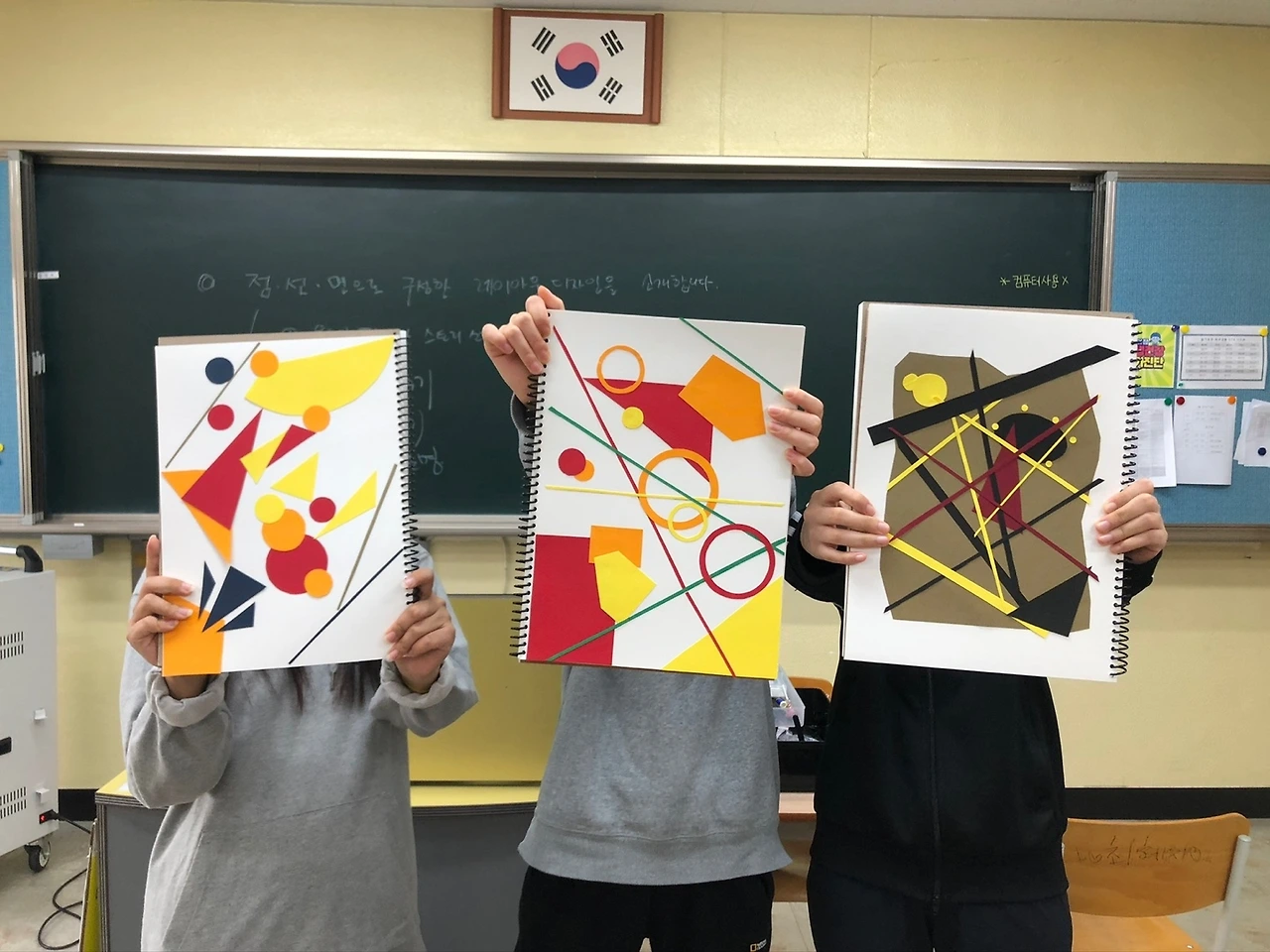 ★학생 1. 칸딘스키에 대해서 알게 되고 추상미술이 왜 생기게 되었는지 알게 되어 좋았고 제가 생각한 동화책의 내용을 점, 선, 면을 가지고도 충분히 표현할 수 있는 것과 친구들이 그것을 맞추는 것이 신기했습니다.
