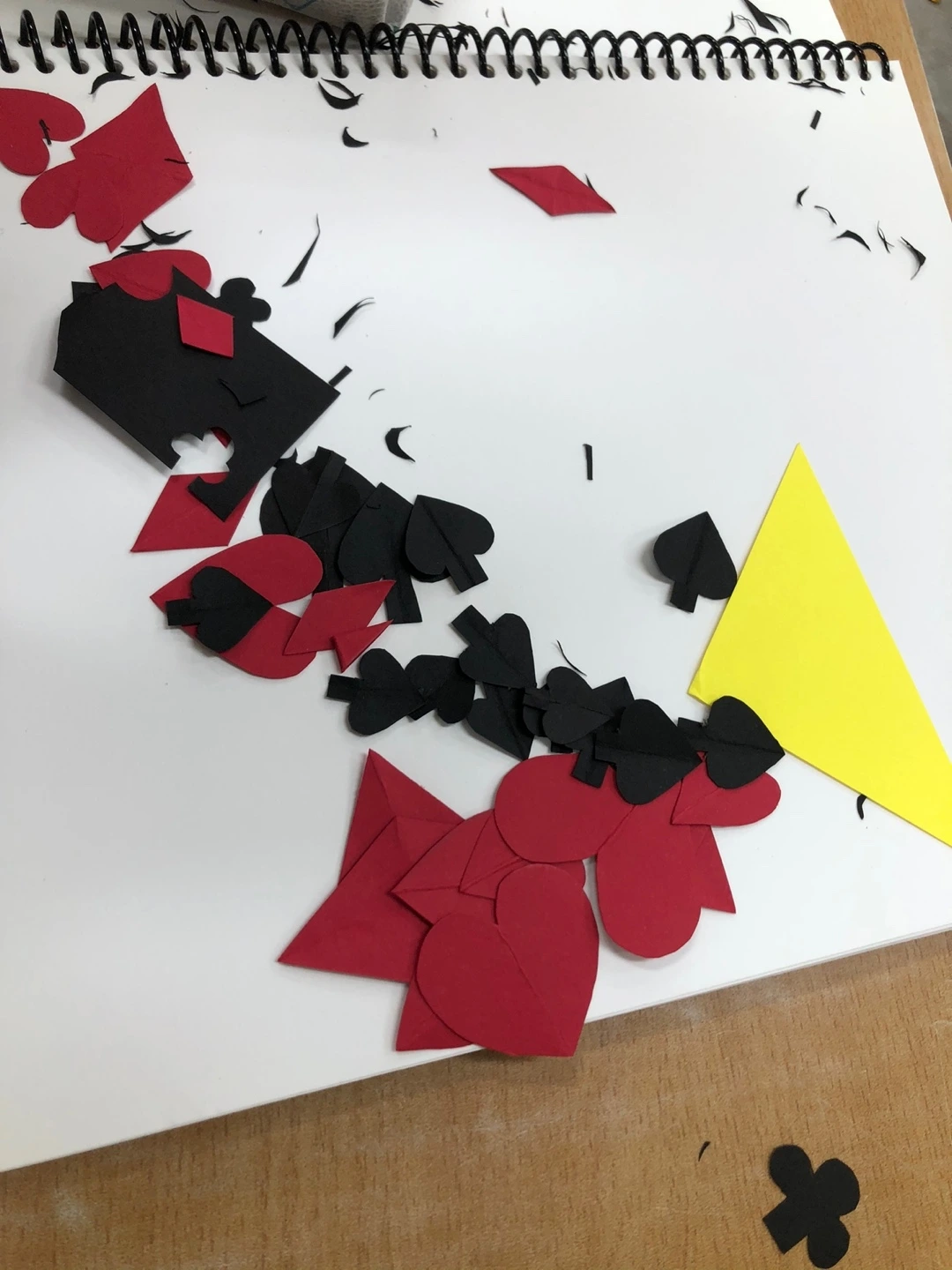 색감을 잘 쓰는 아이들, 꼼꼼하게 형태를 잘 오려내는 아이들, 구성을 감각적으로 하는 아이들, 그리고 깔끔하게 잘 붙이는 아이들, 마찬가지로 교사는 작업용 음악을 틀어주고 아이들을 잘 관찰해야 한다. 그리고 각 반에 두 세명의 아이들은 활동을 어려워한다. 그 아이들에 대한 이끌어줌이 필수이다.