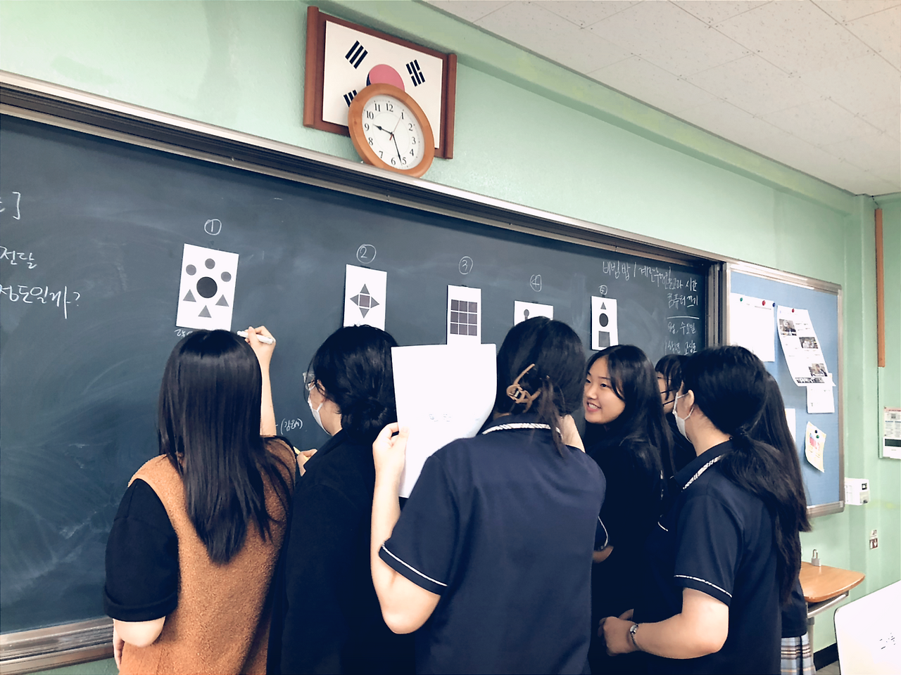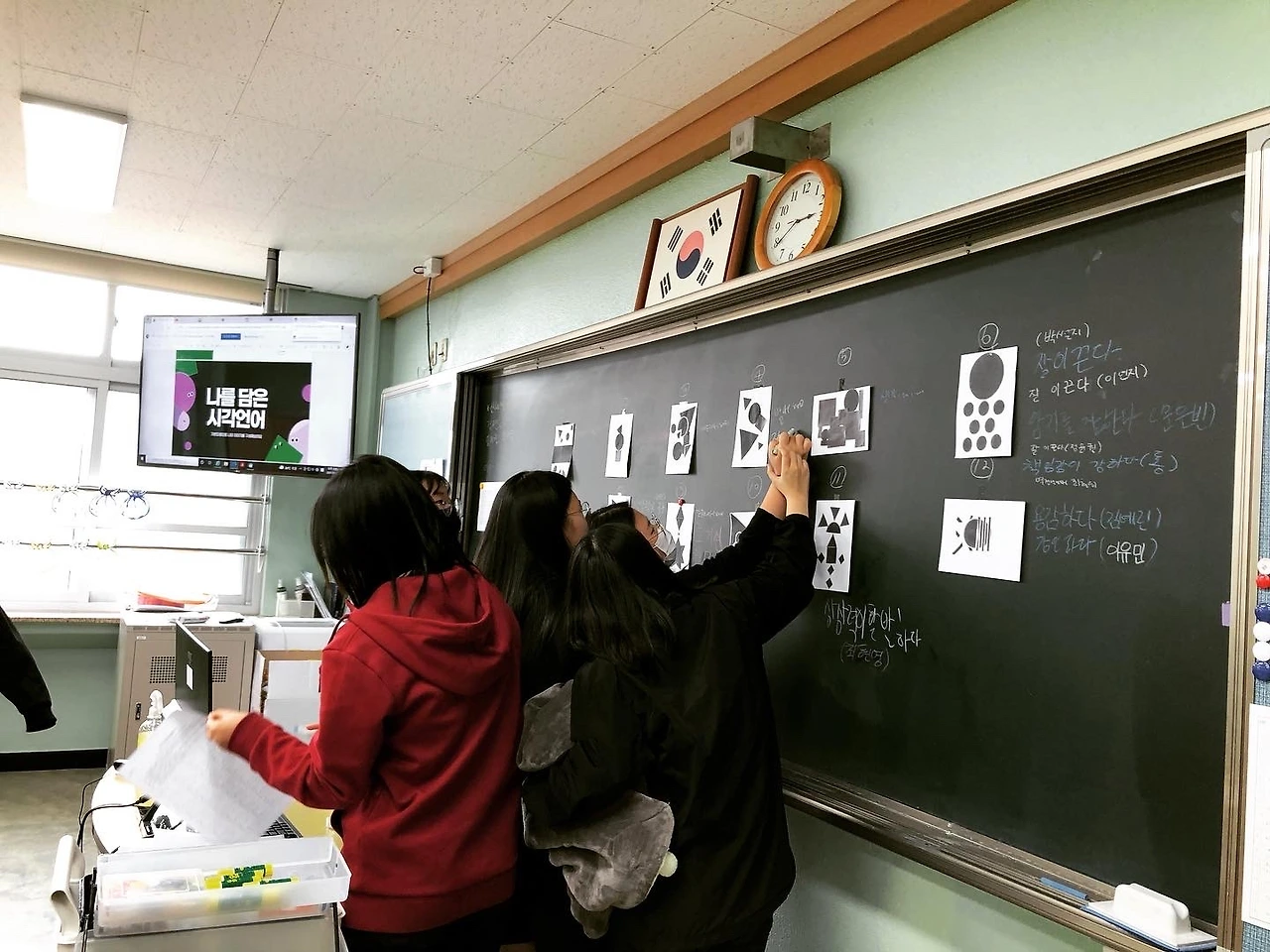 특히 시각언어로 표현된 결과물을 칠판에 부착하여