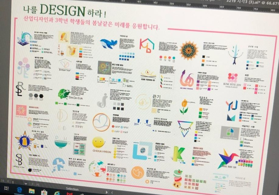 최종 디자인 선정은 친구들의 도움을 받는다. 1차로 교사의 피드백, 2차로 앞, 뒤 번호의 친구들의 피드백을 통해 최종 디자인을 선정하도록 한다. 그리고 컴퓨터 그래픽 작업은 기본 이상의 수준이기 때문에 가장 빠르고 정확하게 진행되었다.