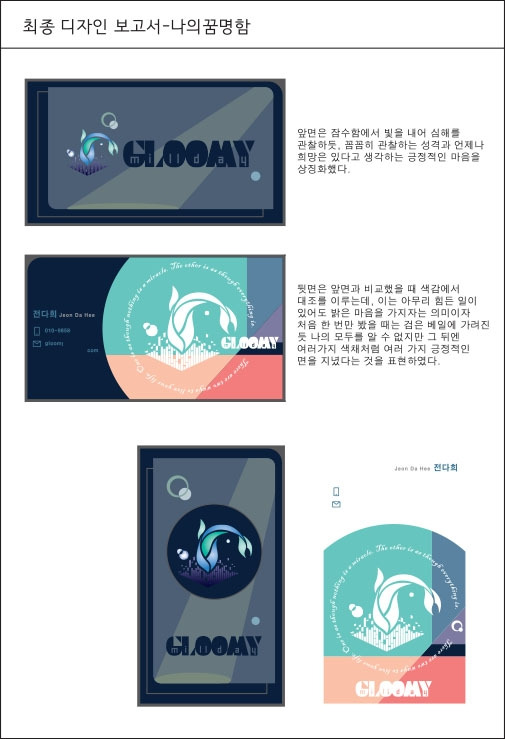 자신의 현재를 분석하여 가까운 미래의 꿈을 담은 명함을 계획하고 동시에 그래픽으로 제작하였다.