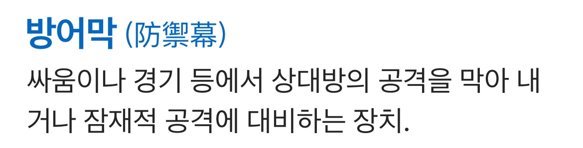 방어막을 국어사전에서 찾아보면 이렇게 나오네요.
