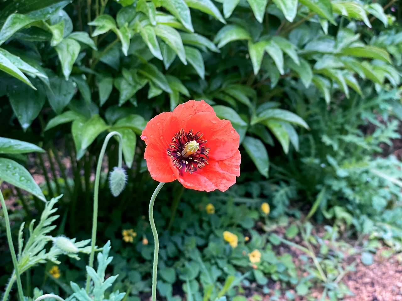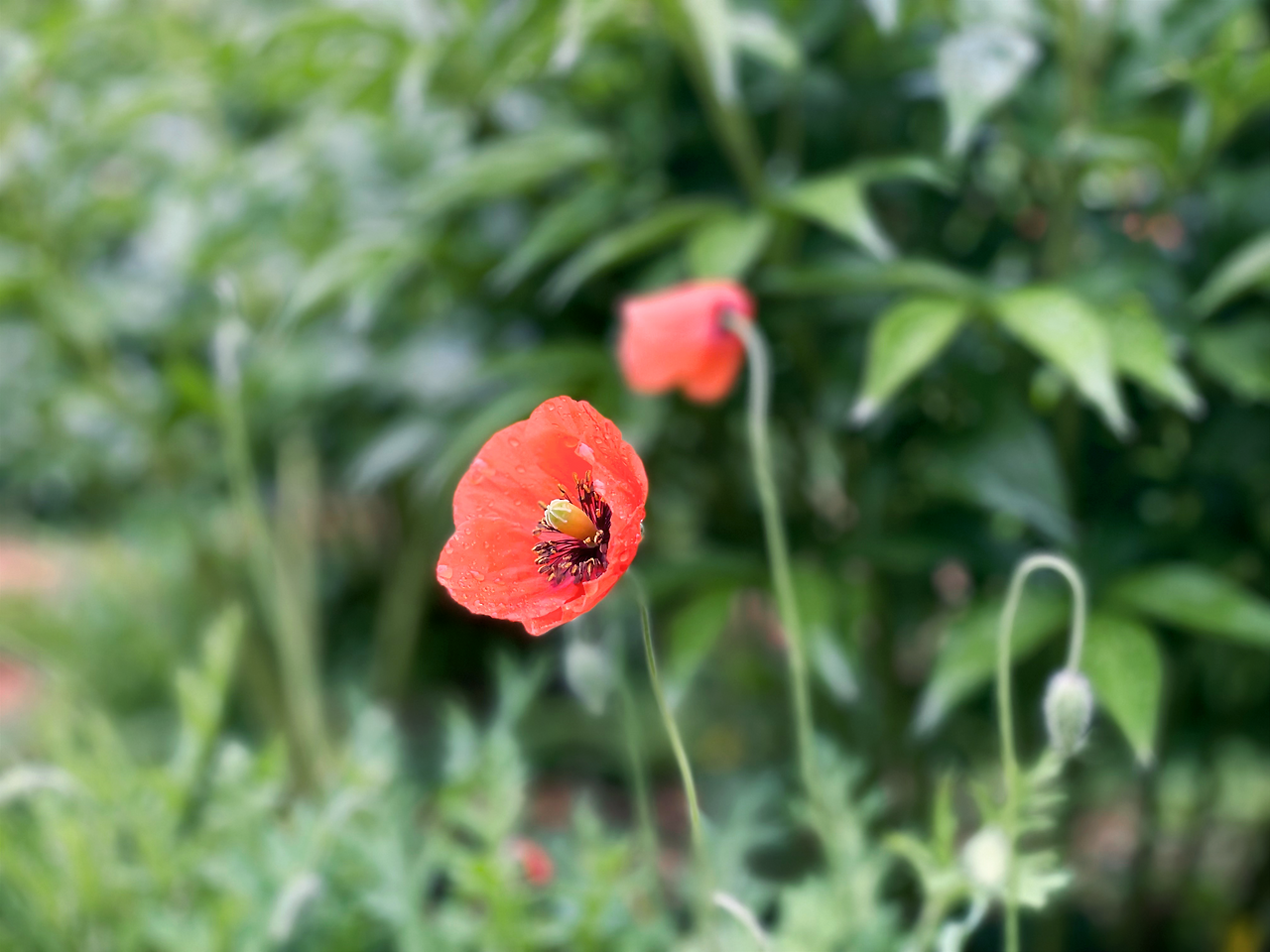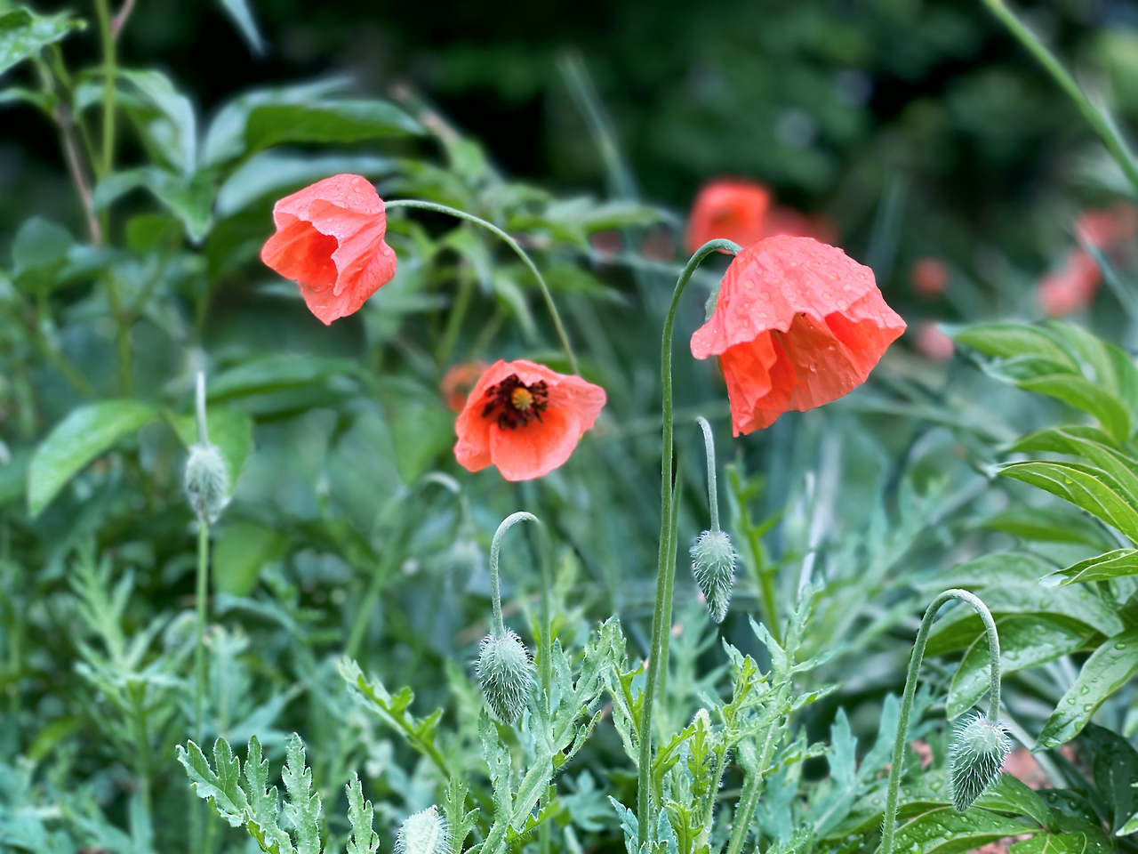 보슬보슬 빗방울이 꽃잎들 사이에