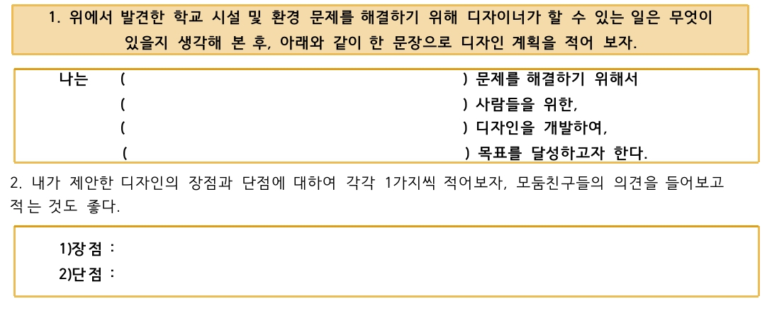제작하였고, 역할에 따라 발표자는 모둠의 디자인 솔루션을 잘 전달하였다.