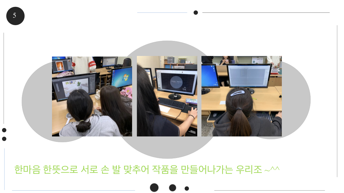 활발한 소통과 적극적인 움직임이었다. 멈춰있지 않음에서 더 발전되어 움직임의 에너지가 넘치는 프로젝트의 과정이 목표였다. 그래서 모둠 구성원은 평소 친밀도가 높고 관계 형성이 잘 되어 있는 친구들을 교사가 임의로 묶었다. 그것이 '신의 한 수'였다.