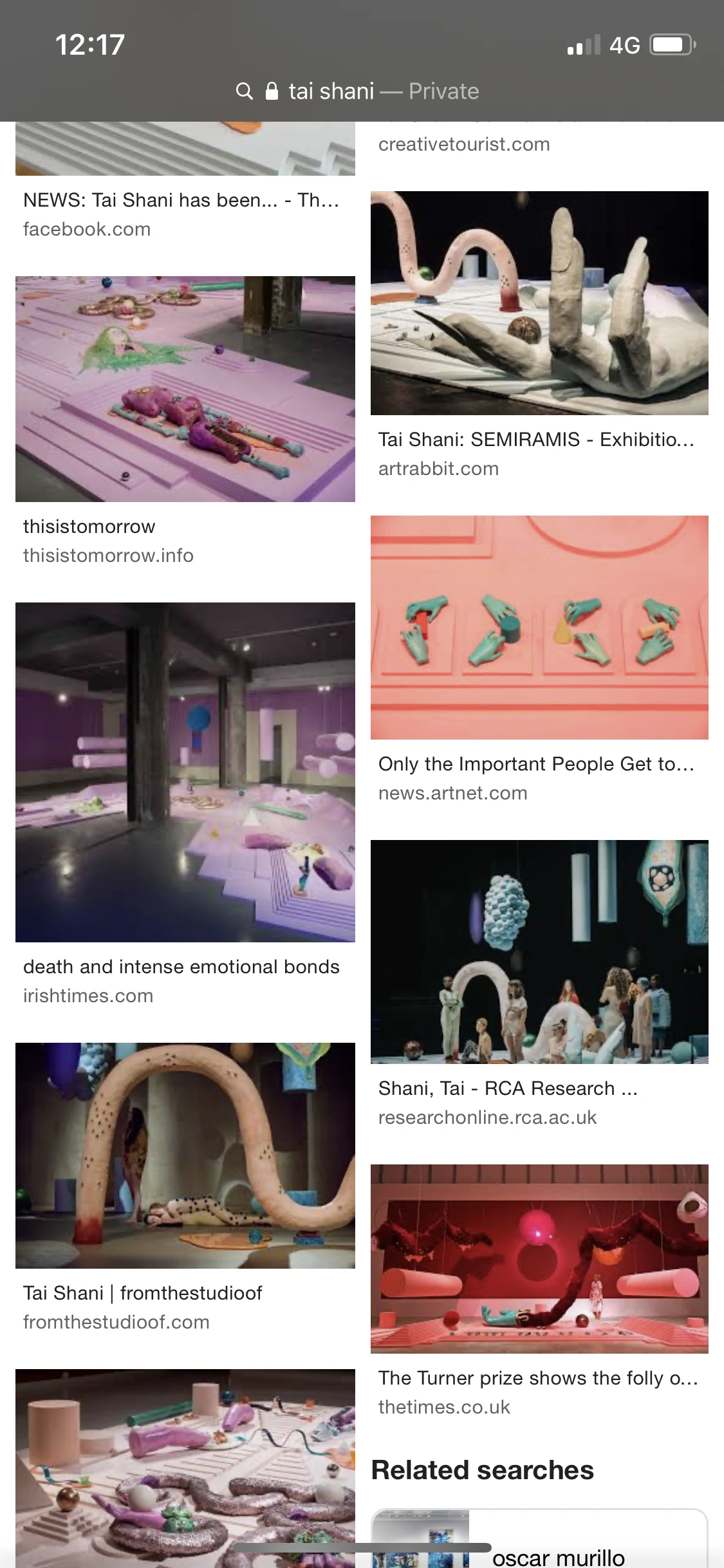 같이 걸으면서 논문 프로포절을 어떤 걸로 제출했냐고 물으니 Tai Shani 라는 젊은 영국인 작가에 대한 작가 연구로 진행할 예정이라고 했다. 그리고 이 작가의 도록을 읽다가 그녀의 작가론을 쓴 사람이 무려 우리 둘을 소개해준 브리짓 교수님이었다는 것을 깨달아서 흥미로웠다며.