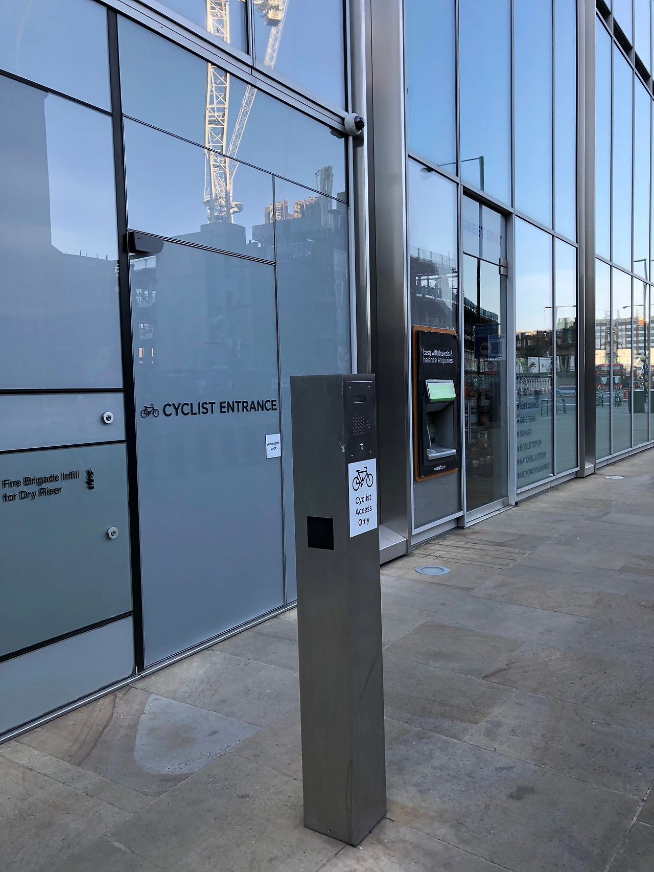 가는 길에 어떤 회사 건물의 cyclist entrance 가 흥미로워 찍었고