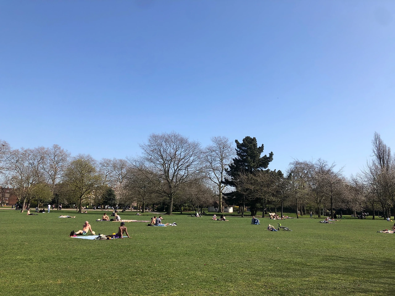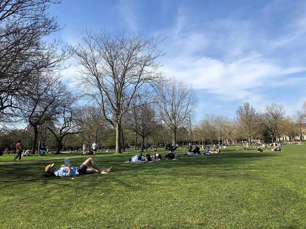 이 날도 날씨가 너무 좋았어서 사람들을 보면 거의 다 여름 옷차림을 하고 있다. 약간 중간이 없는 영국.. 지금 3월인데 웃통 벗고 광합성하는 사람 반.. 워낙 맑은 날을 보기 힘들다 보니, 해만 나오면 온 영국 사람들이 기다렸다는 듯이 뛰쳐나오는 것 같다.