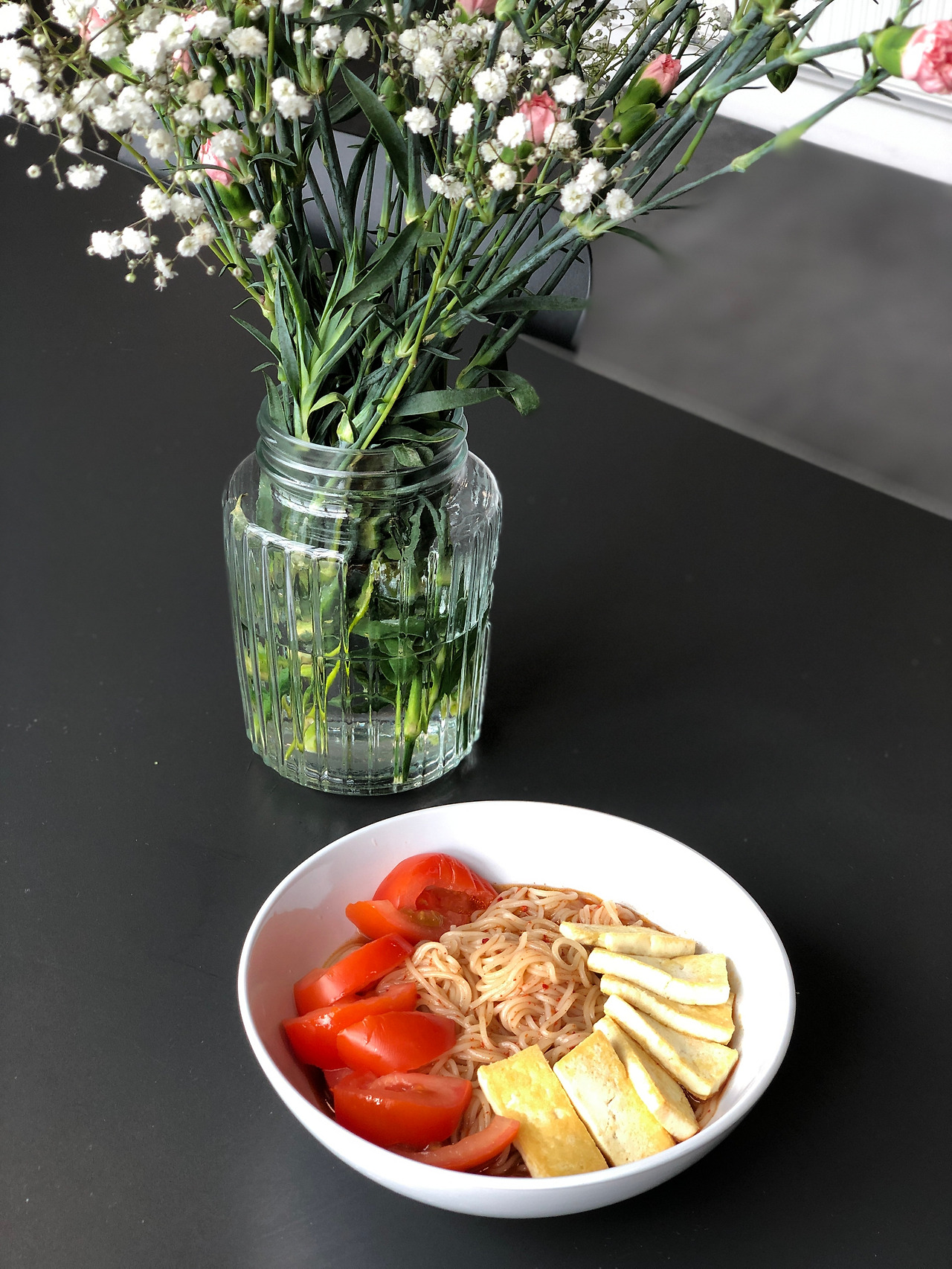 간장 국수에 두부랑 토마토 올려서 먹었고