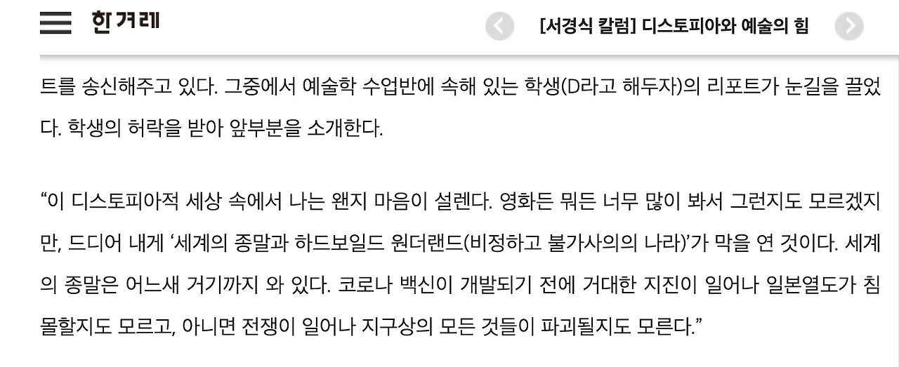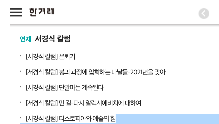 한겨레에 싣는 칼럼 시리즈는 수필 같은 느낌.