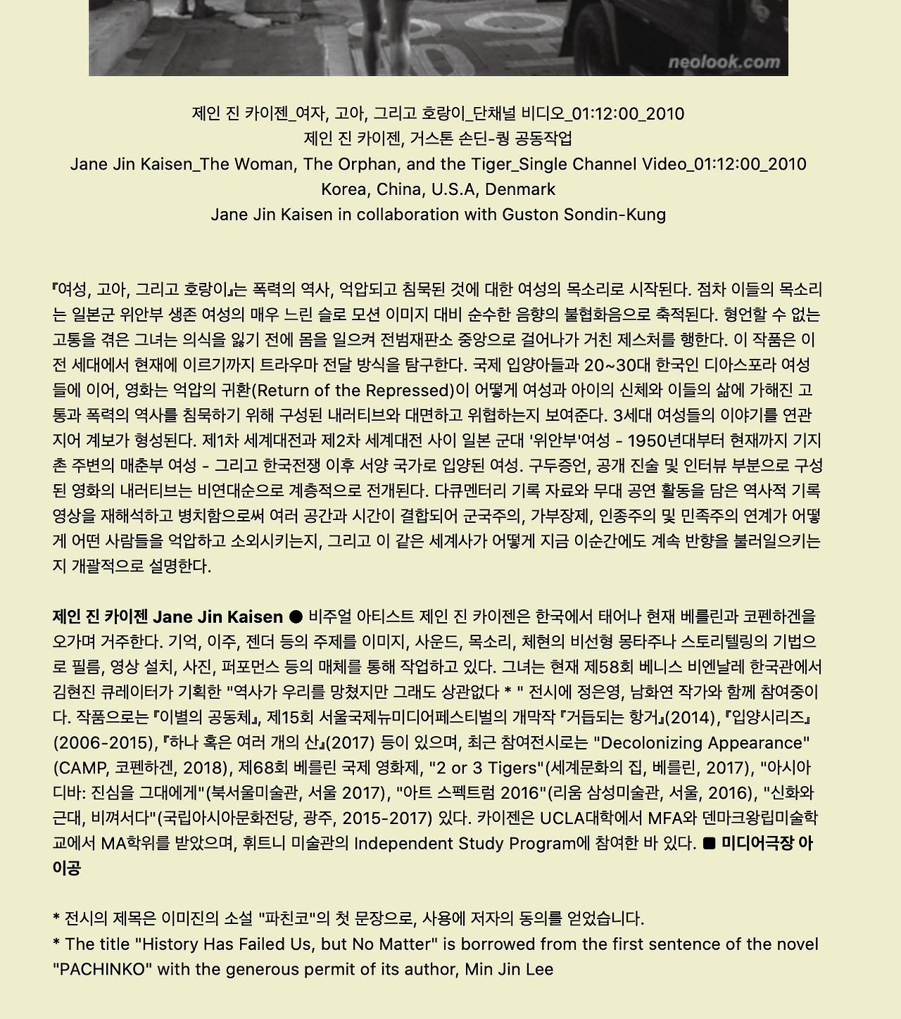 내가 지금 관심 있는 주제에 대해 이미 지지난 해에 전시를 했었구나 싶었다.
