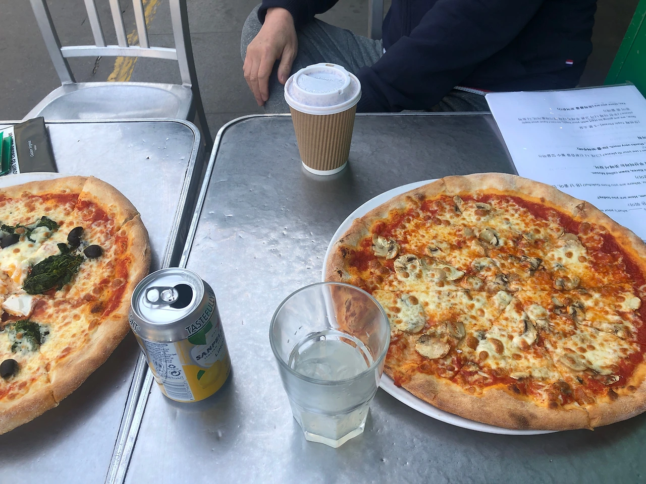 알쓰인 난 크랜베리 주스. 너무 죄송하고 시간을 내주신 것만으로도 감사한데 피자까지 아저씨가 사주셨다. 이런저런 흥미로운 내용을 꽤 많이 들었다. 아저씨 시각에서의 뉴몰든, 한인 사회, 그리고 아저씨가 어떻게 영국까지 건너오게 되었는 지도.
