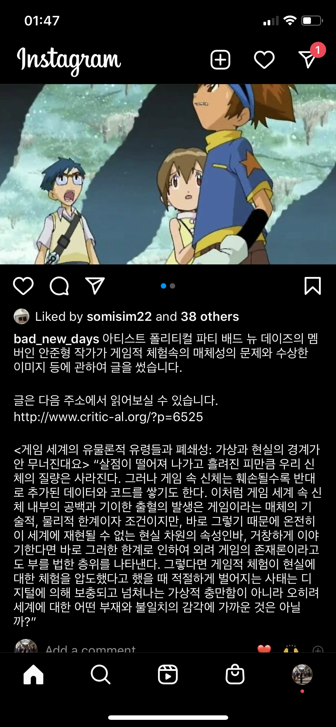 늘 재밌게 읽고 있는 안준형 비평가의 글.