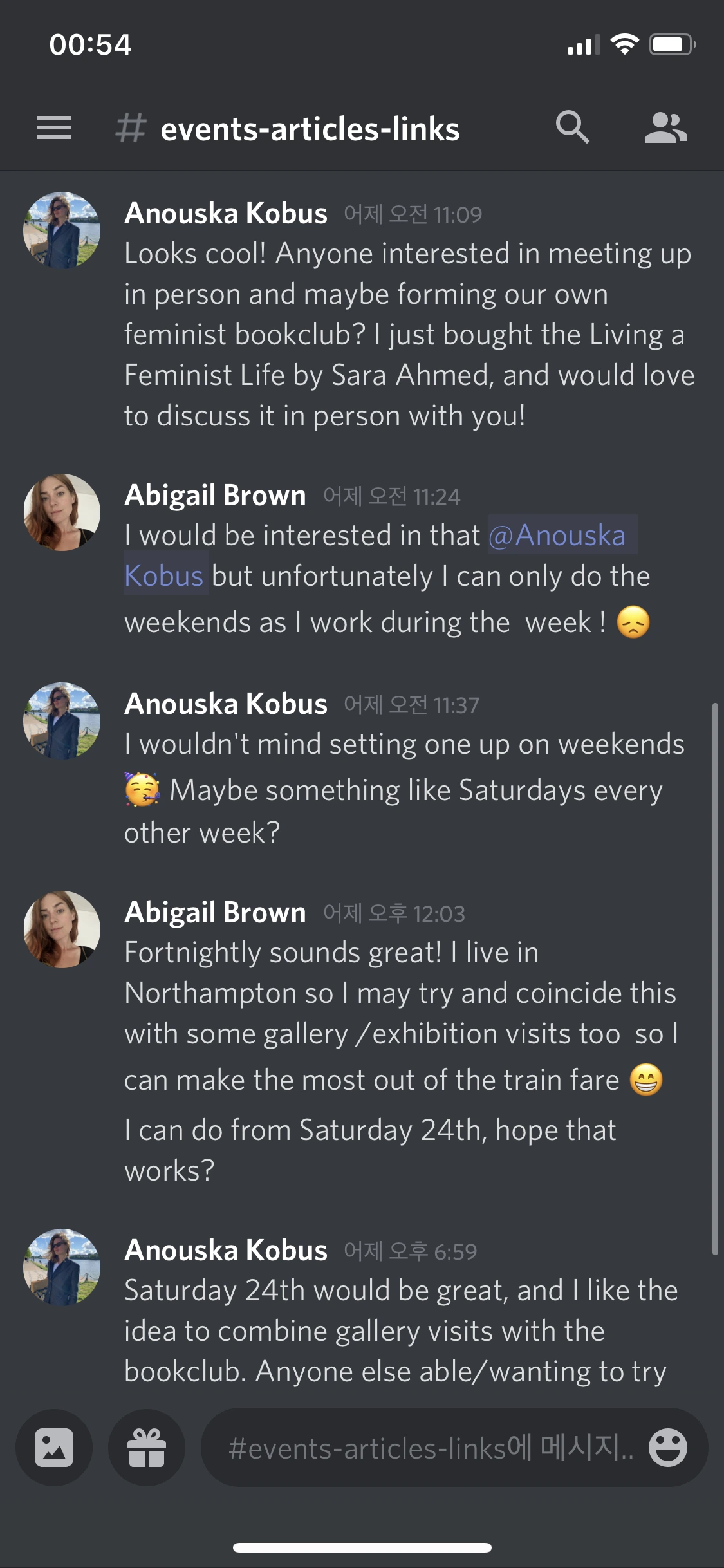 페미니스트 북클럽 창단 계획을 구상하고 있었다.