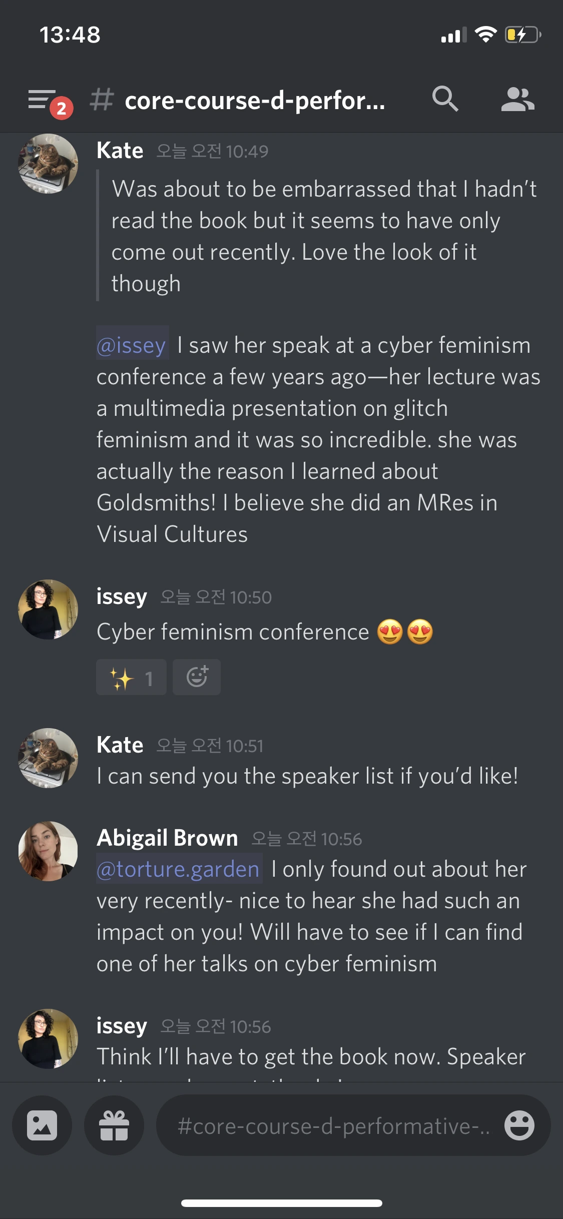 참 아는 비평가 철학가 사상가 활동가도 많고, 본 렉처와 아티클, 책도 많은 코스 메이트들.
