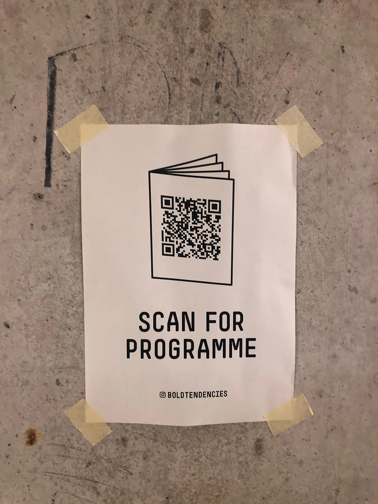 프로그램지를 인쇄하는 대신 이렇게 코드로 대체, 그 코드를 또 책자 픽토그램에 넣은 센스.