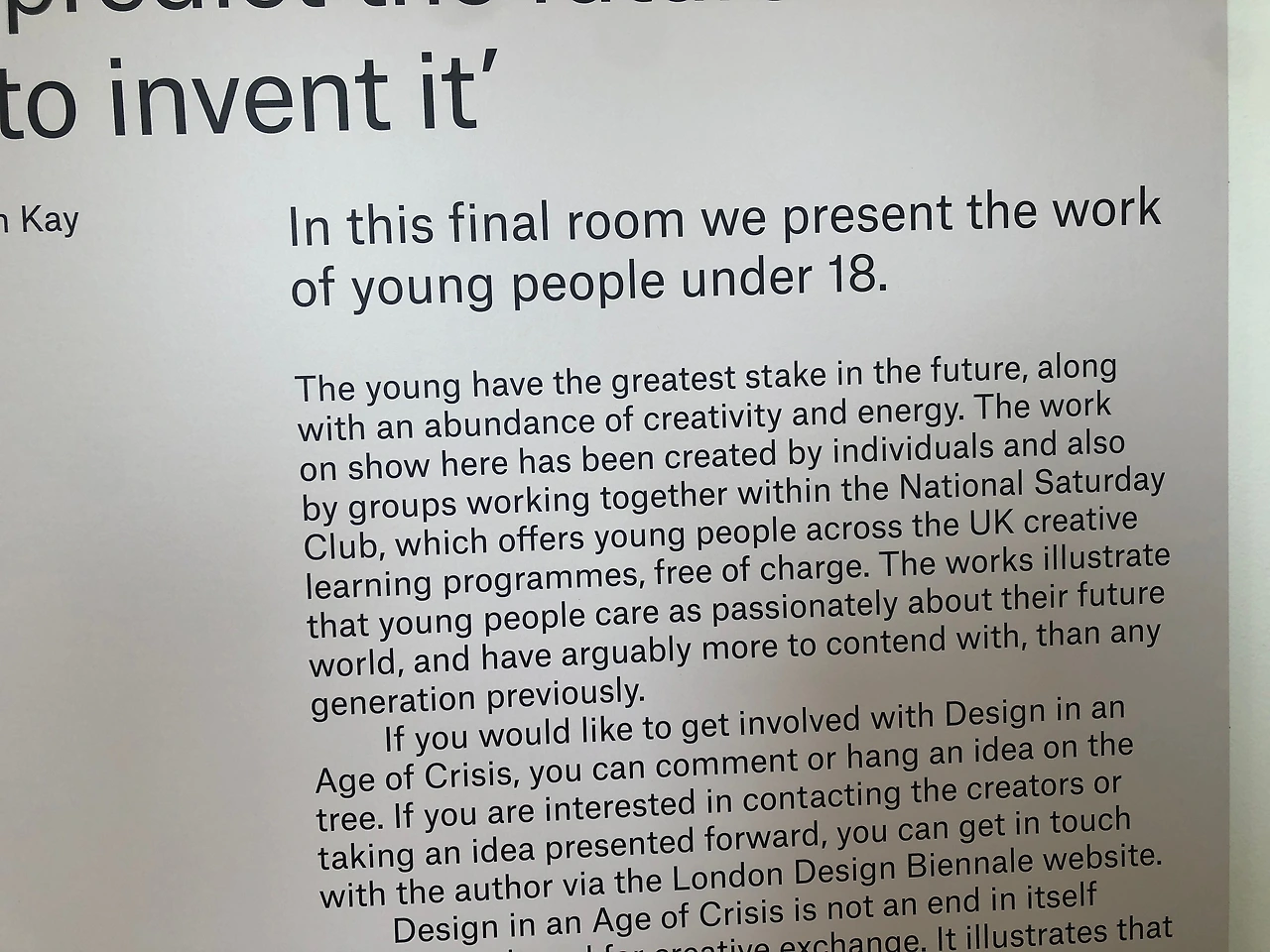"창의성과 에너지가 풍부한 아이들/청소년들은 미래의 위기에 봉착되어 있다. 이 작품들은 아이/청소년들이 열정적으로 그들의 미래에 관심을 가지며, 그 어떤 세대보다 이에 논쟁적으로 참여할 수 있음을 보여준다."