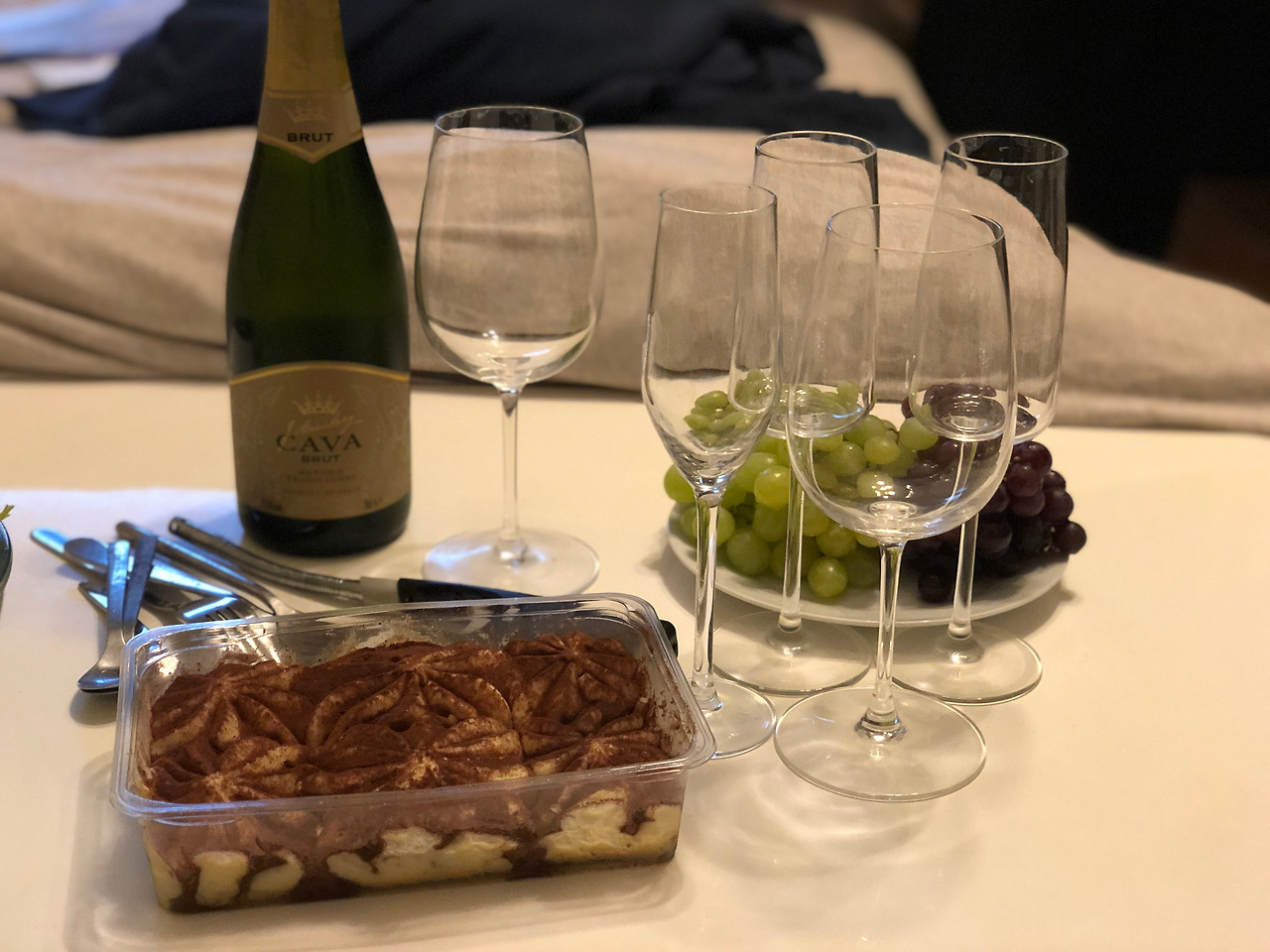 후식으로는 우리가 사온 와인과 티라미수, 그리고 과일을 먹었다. 그렇게 배불리 하루 끝.