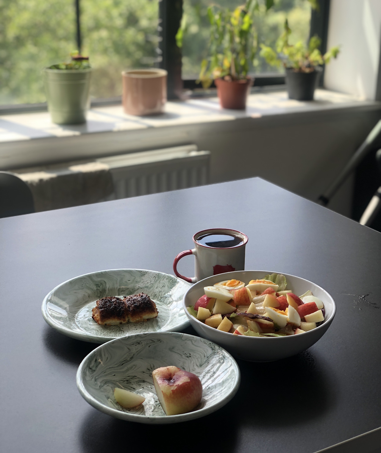 샐러드 아점. 지금보다 석사 할 때 디저트와 야식은 훨씬 많이 먹었는데, 막상 식사 자체는 훨씬 건강하게 했다.