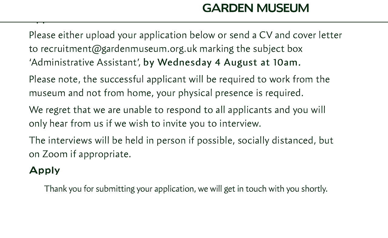 이 날은 V&A 에 지원을 했나 보다. 당시 졸업도 하기 전에 마음이 급해서 마구 지원을 하고는, 무소식에 늘 실망만 껴안곤 했다. 뭐 좋게 생각하면 이때 자소서 쓰는 연습을 많이 한 덕에, 나중에는 합격 메일을 받았던 것이겠지만. 여하튼 무슨 자신감으로 영국 국립미술관에 지원 폭격을 날리던 작년, 그리고 1년이 지난 올해는 그게 현실이 되어 정말 영국 미술관에 학예직으로 일하고 있으니 참 삶이란 어디로 튈지 모르나 보다.