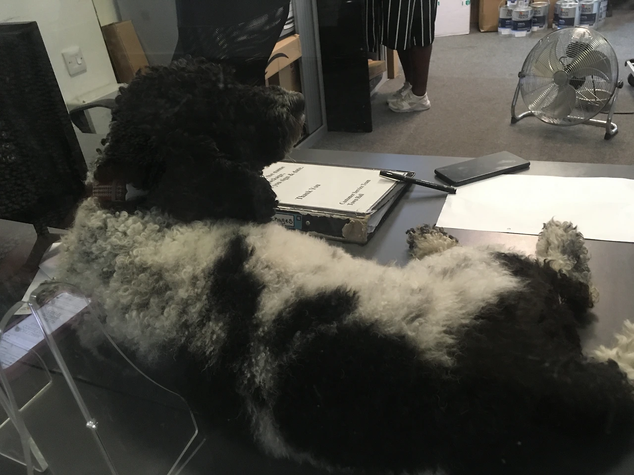 기숙사에 가끔 오는 강아지. 오늘은 리셉션 데스크 점령
