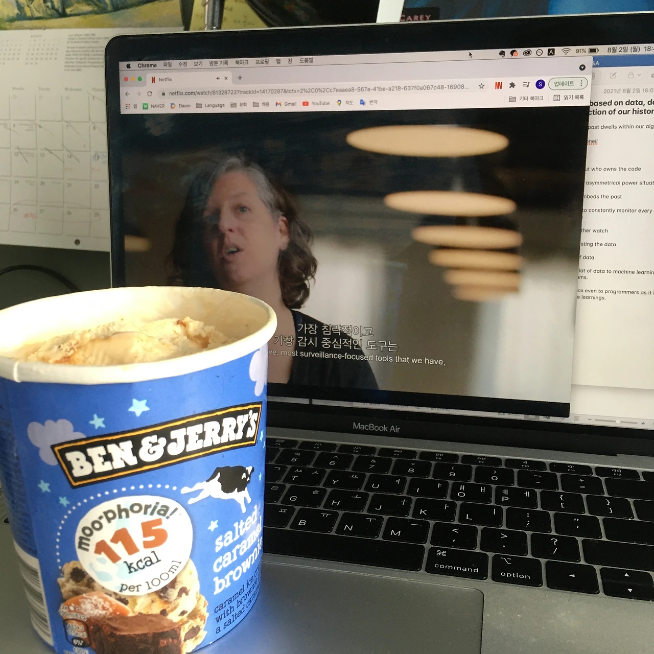 이때 봤던 넷플릭스 다큐멘터리는 <Coded Bias>. M.I.T 박사과정 연구자 Joy Buolamwini 가 알고리즘의 불균형과 차별, 우리가 알게 모르게 유출당하는 정보들이 우리를 어떻게 분석하고 이게 어떤 차별을 가져오며 사회 전반에 어떤 영향을 끼치고 있는지 추적한 다큐멘터리였다.