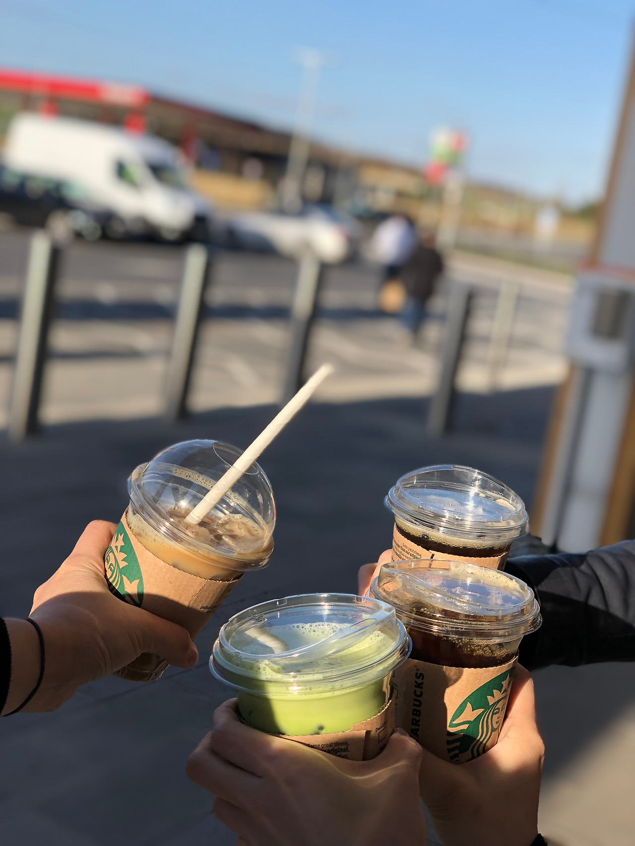 고된 운전길로 중간에 휴게소에 들러 스타벅스도 테이크어웨이 하고