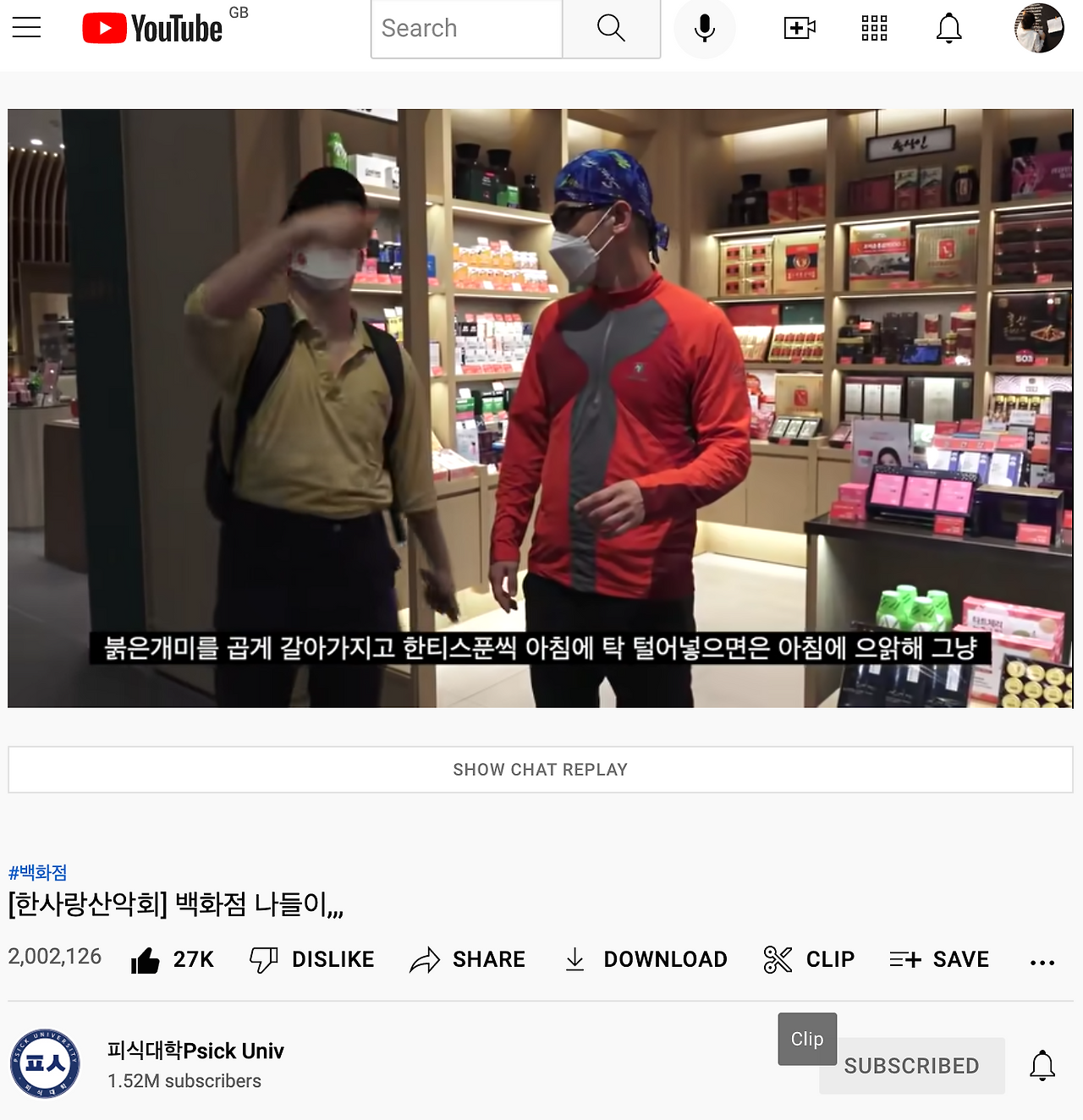 작년 이맘 때는 한참 한사랑 산악회 봤던 시기다. 요즘엔 피식 쇼로 넘어왔다.