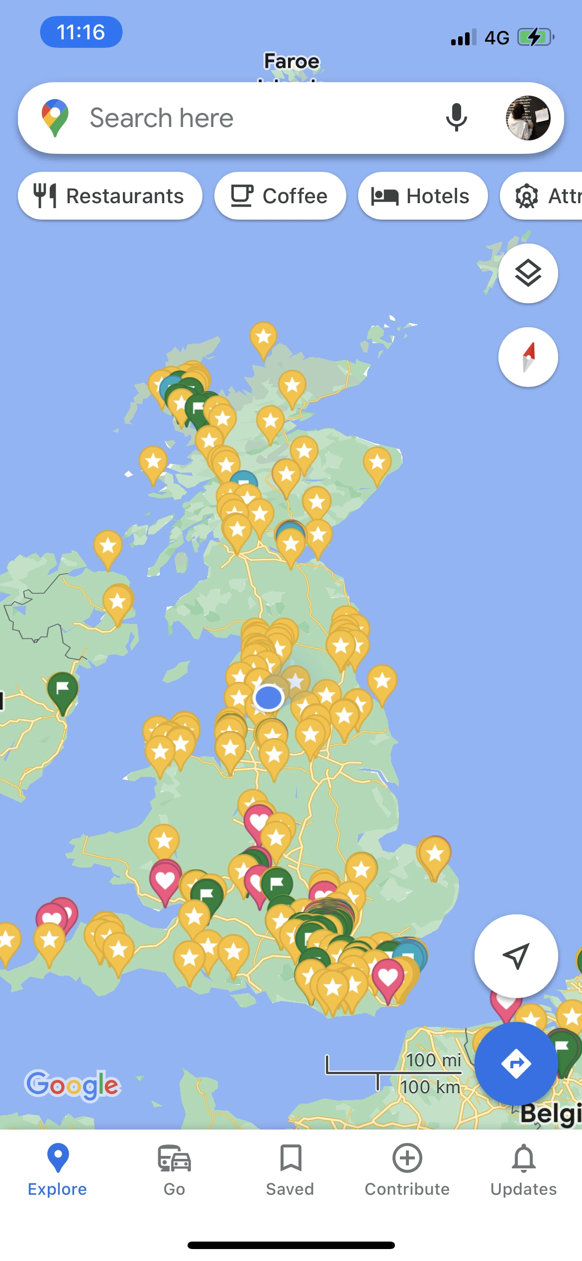 4시간이 지나 겨우 반 정도 왔다. 저 파란 점이 우리가 있던 곳.