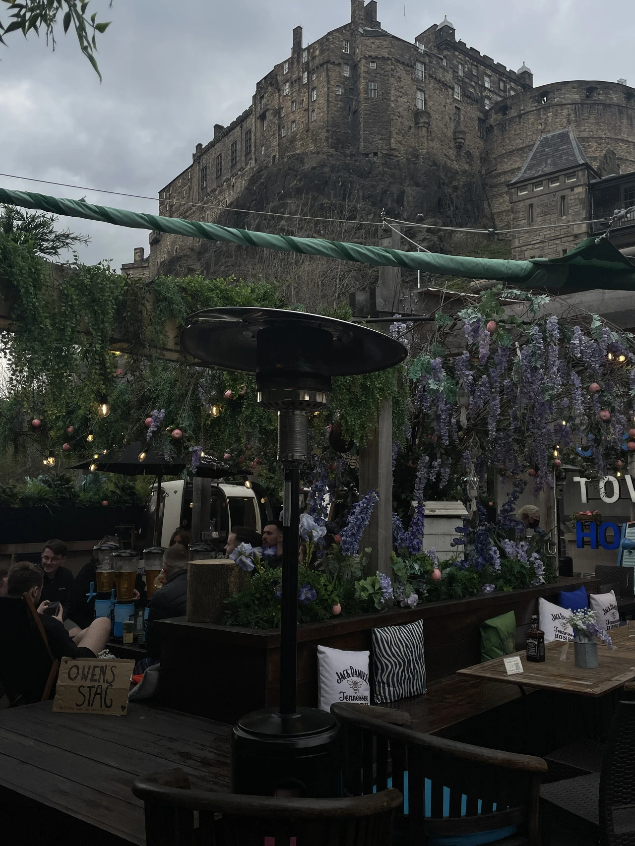 바로 맥주 마시러 펍에 왔다. 뒤편에 에딘버러성을 끼고 있는 유명한 루프탑 펍.