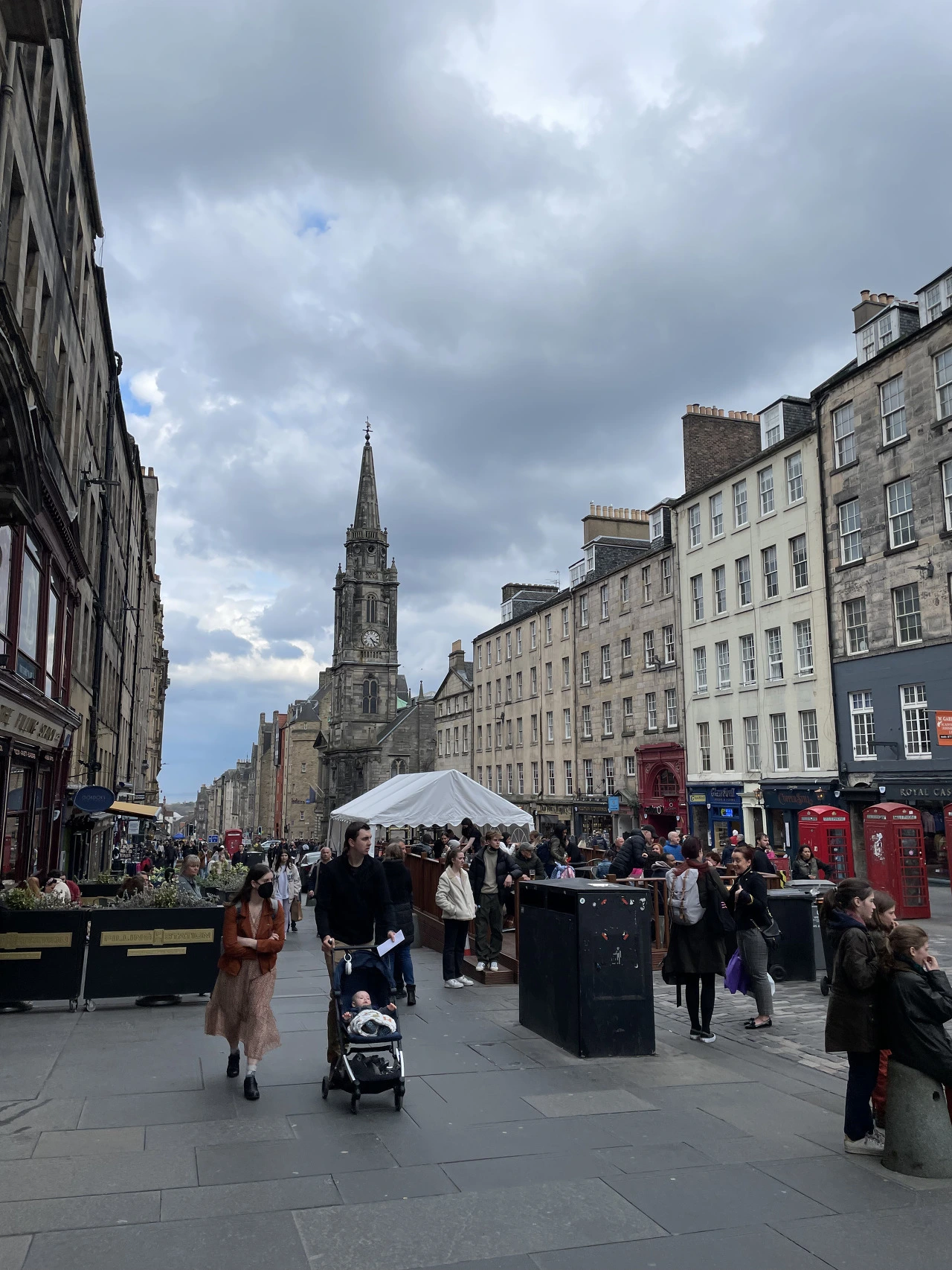 그 유명한 로열마일. 오르막길을 둘러 건물이 줄지어 있다.
