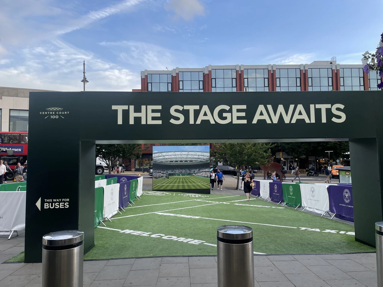 지하철 앞에는 저런 윔블던 경기를 보러 온 사람들을 환영하는 문과 인조잔디가 설치되었고,