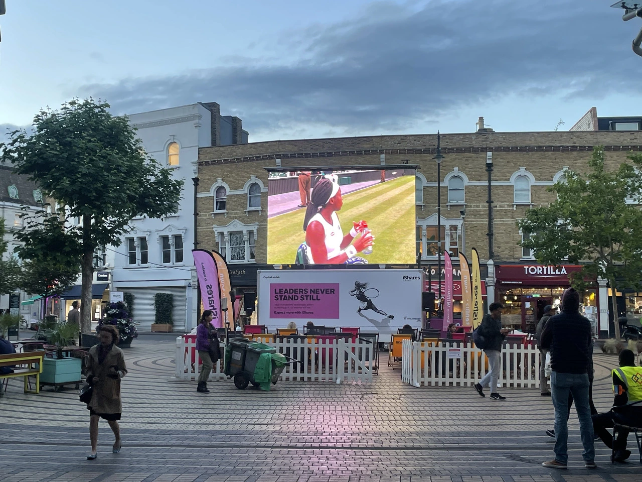 그리고 헬스 갔다가 나오는 길에 보이는 윔블던 경기 생중계 공간.