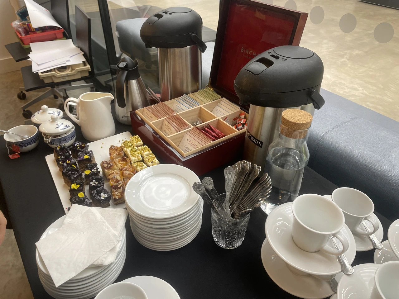 교육 팀이랑 미팅 있던 날. 다과랑 티를 준비해 주셨다. 이런 스낵이 오피스 워커들엔 얼마나 한줄기 빛 같은지.