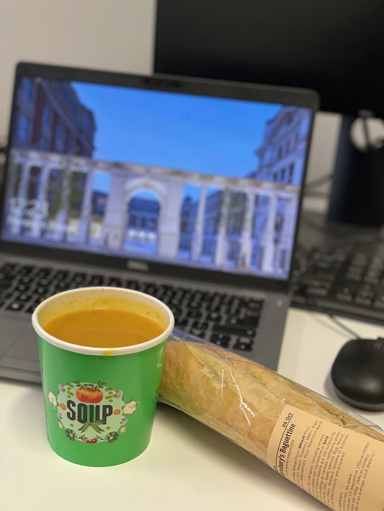 이 날 점심은 칸틴 수프, 칸틴에서 주는 빵 양이 작아서 산책 나갔다가 사온 세인즈버리 바게트. 칸틴에서 먹는 수프는 늘 맛있는데 마트에서 파는 수프를 먹으면 또 그 맛이 안 난다.