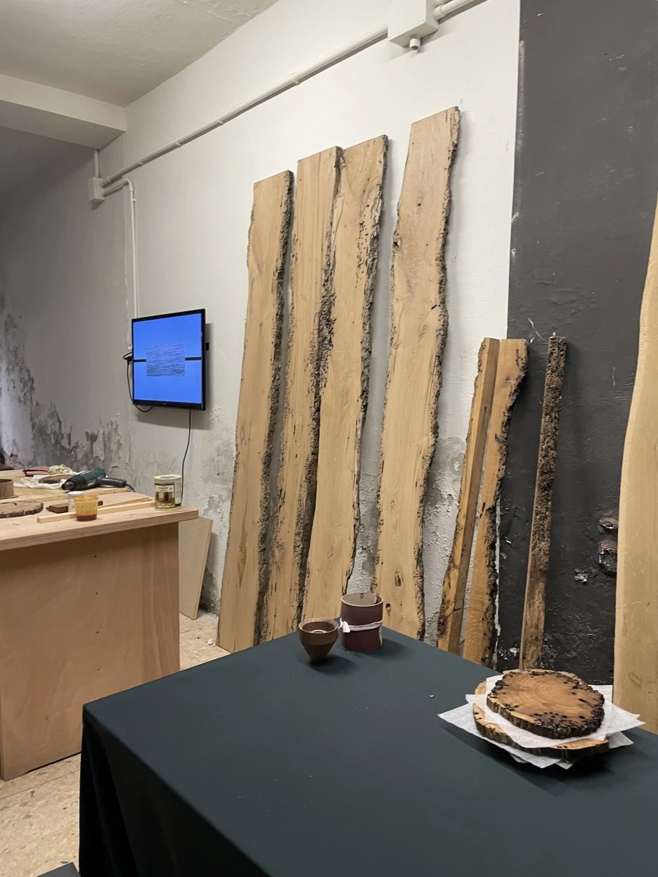 베니스 바다에 침전된 나무의 단면이라고 한다. 이 구멍이 송송 뚫린 나무 부분을 이용한 가구들과 오브제들이 있었다.