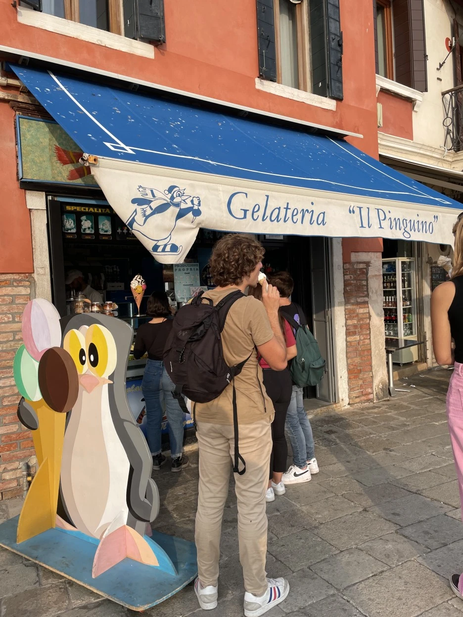 다시 3차전으로 전시를 한참 보고 겨우 숨돌리며 먹는 젤라또. 전시는 그렇게 많이 봤는데 젤라또는 이때가 겨우 처음. 젤라또를 담은 조약한 컵이나 촌스럽고 귀여운 가게 이름(펭귄)까지 뭔가 로컬스러웠던 젤라떼리아.
