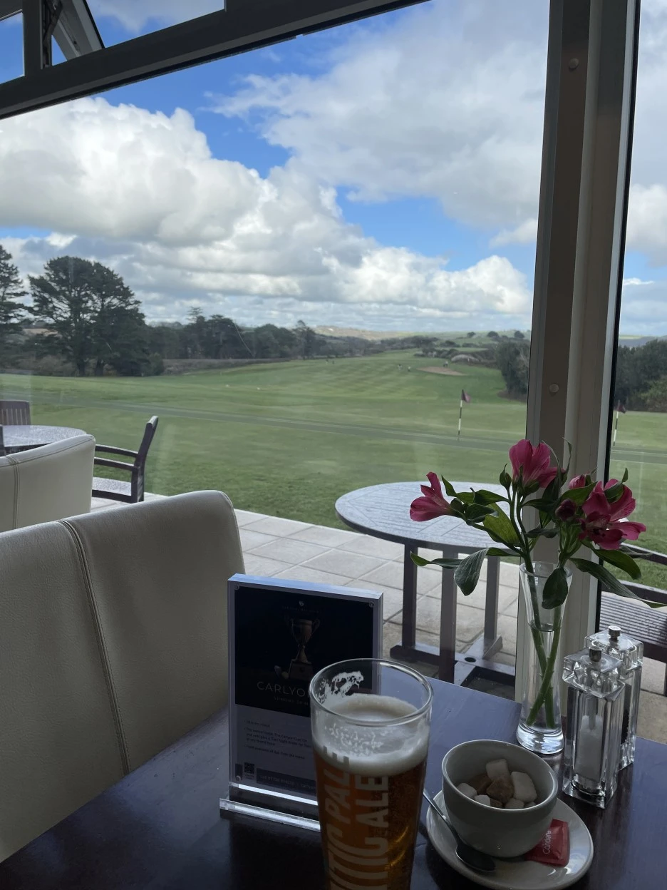 라운지에서 맥주. 골프 경기도 종종 열리는 유명한 골프장이라고 한다.