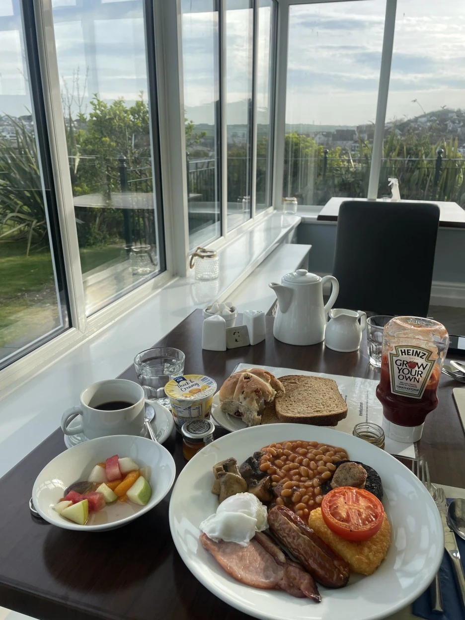 조식 먹었던 식당. 잉글리스 브렉퍼스트를 주문하면 따로 이렇게 주고, 요거트나 시리얼, 빵, 과일 등은 뷔페식으로 차려져있었다.