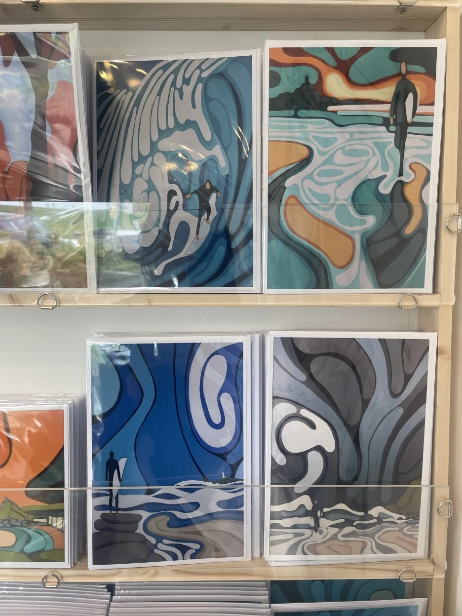 비가 그칠 때쯤 다시 나와서 산책하다가 갤러리를 발견했다. 콘월의 서핑하는 장면을 담은 회화였다. 이 회화 작품을 담은 엽서가 팔길래 고민하다 안 샀는데 지금 보니 살걸.