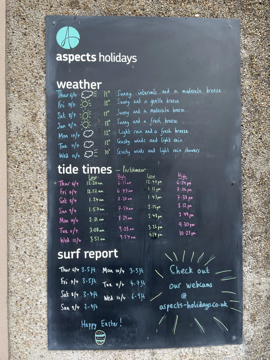 가게 앞에 붙여져있던 날씨와 조류 알림판.