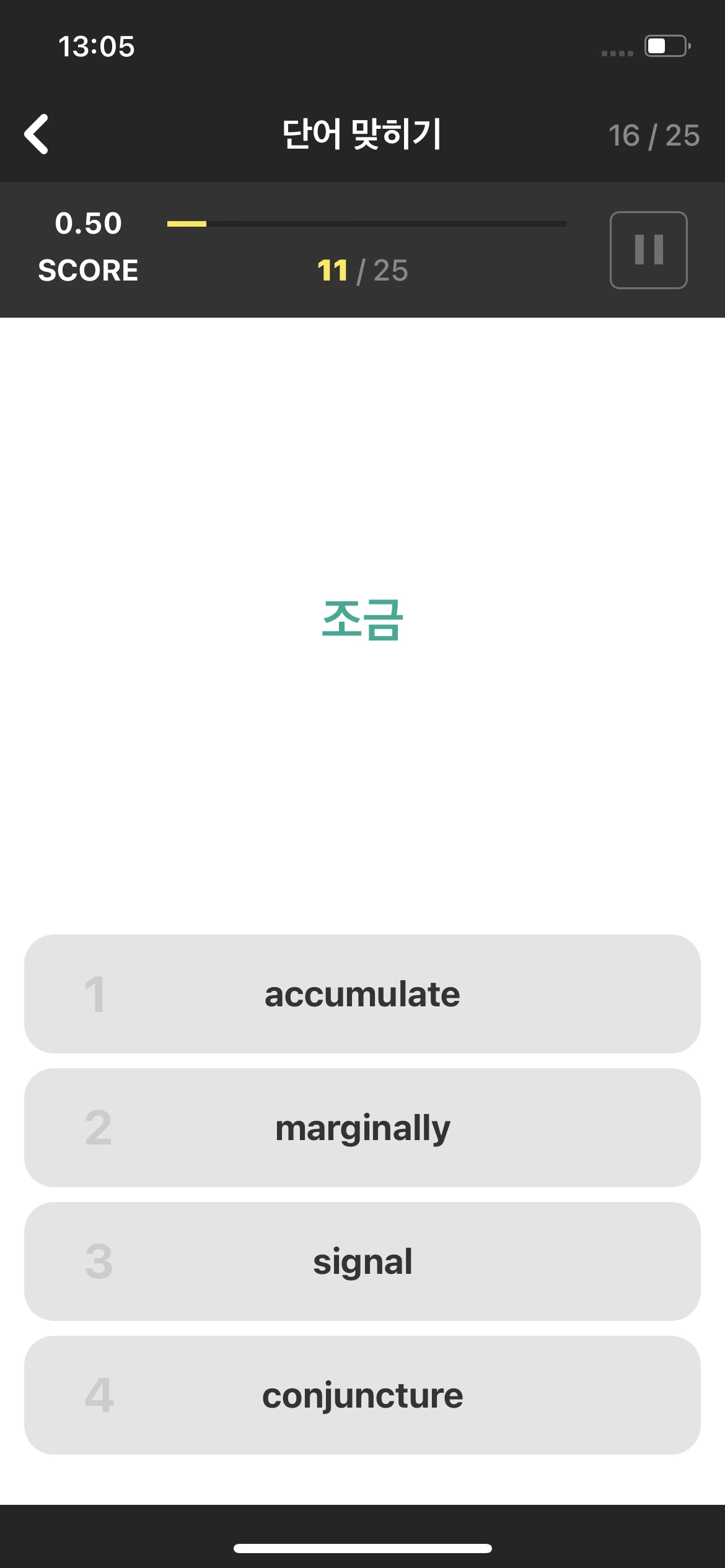 그리고 요즘 영어실력이 후퇴하는 것 같아 이런 앱 깔아서 단어 맞히면서 출퇴근하기도 했다. 내가 이 앱 하는 것을 친구가 보고 본인은 실생활에서 이런 단어 써본 적 없다며 혀를 끌끌 찾지만.