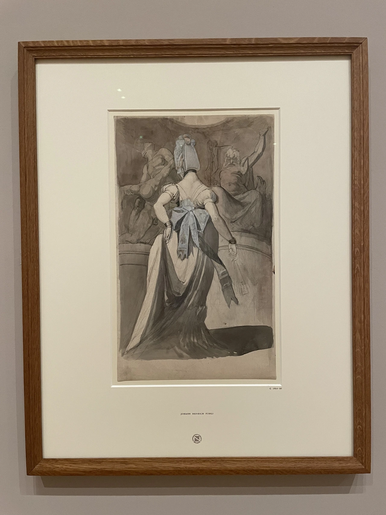 Woman in a sculpture gallery. 고전적이고 남성적인 신과 영웅들을 묘사한 동상 앞에 서있는 현대성, 여성성, 패션 그리고 쾌락을 상징하는 여자. 이를 통해 푸젤리는, 그가 보수 소셜 클럽에서 종종 표출하던 의견처럼, 문명의 쇠락을 함축하고 싶었을 수도 있다고 한다.