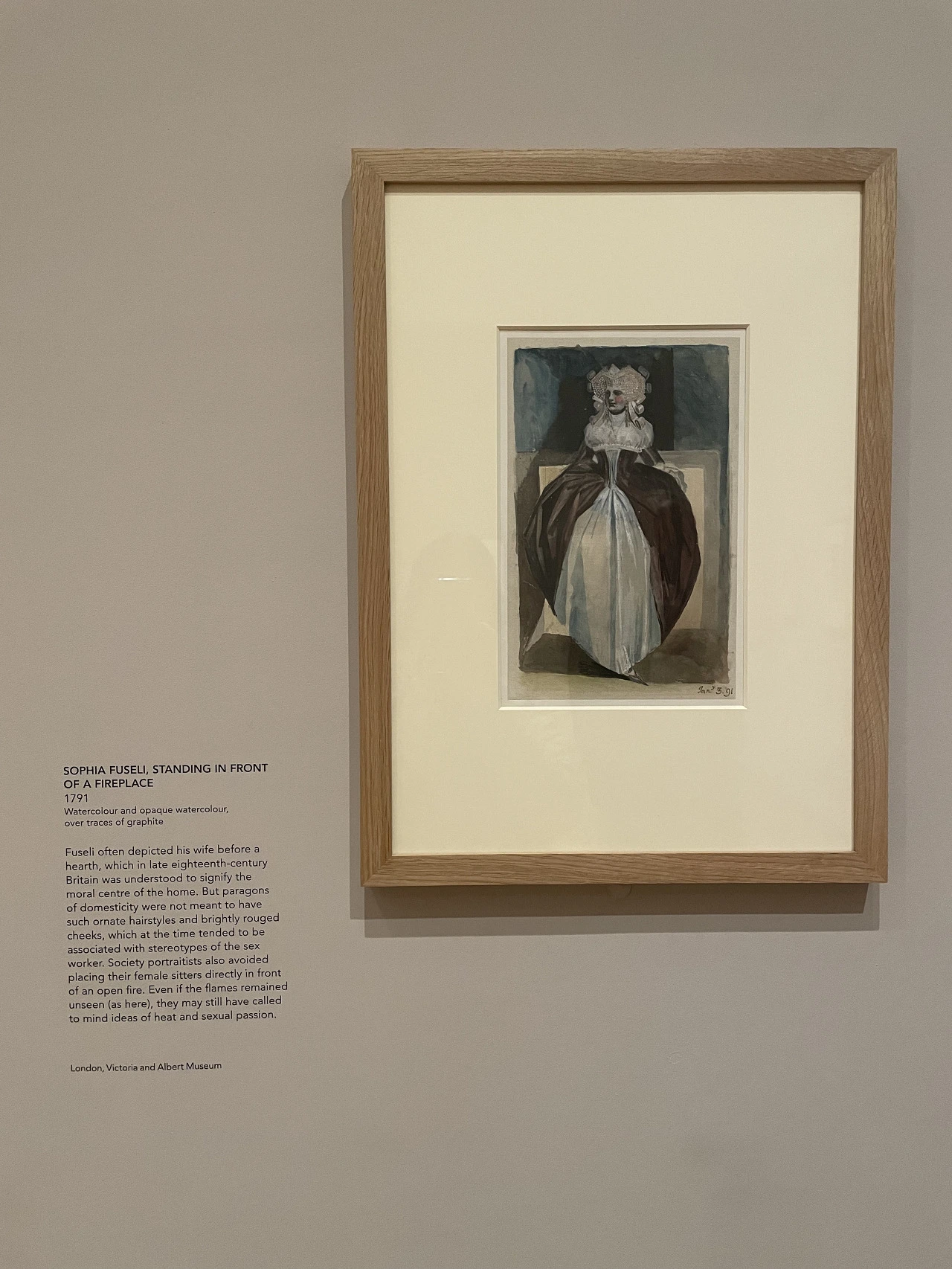 아래는 벽난로 앞의 여자라는 그림. 18세기 후반에는 이렇게 화려한 헤어스타일을 집 안에서는 하지 않았다고 한다. 때문에 그림 속 여자를 화류계 종사자 sex worker 로도 볼 수 있는데, 특히 벽난로 앞에 위치시킨 것으로 보아 열기와 성에 대한 열정을 연관지은 것 같기도 하다고 한다.